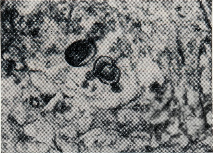 Течение хрон. Наблюдаются также вторичные поражения костей, позво¬ночника, ребер, внутренних органов, мозговых оболочек. Первичный Б. кожи встречается редко, причем на месте внедрения грибка образуется шанкроподобная язва с регионарным лимфаденитом. Диагноз основывают на обнаружении возбудителя в мокроте, гное, биопсированной ткани наряду с характерной псевдоэпителиоматозной гиперплазией эпидермиса и на получении культуры грибка. Заболевание дифференцируют с криптококкозом, туберкулезом, сифилисом, хромомикозом, лейшманиозом, споротрихозом. Прогноз при локализованных формах поражения кожи для жизни благоприятный, при диссеминированных формах бластомикоза Гилкриста, с поражением внутренних органов, особенно мозговых оболочек, высокая смертность. Прогноз при первичном поражении легких зависит от тяжести клинической картины — см. Пневмомикозы. В результате перенесенного заболевания создается иммунитет. Лечение. При тяжелых формах бластомикоза Гилкриста наиболее эффективен амфотерицин Б (внутривенные вливания), при плохой его переносимости — нистатин в суточных дозах 5 000 000 ЕД и более, повторными курсами в зависимости от клинического эффекта лечения. При ограниченных поражениях кожи — хирургическое иссечение очага, электрокоагуляция; повязки с жидкостью Люголя, разведенной в 2—3 раза, растворы анилиновых красителей; витаминотерапия, общеукрепляющее лечение, переливания крови. Бластомикоз келоидный Лобо (син.: glenosporellosis, амазонский бластомикоз, болезнь Лобо) — хрон. глубокий микоз, характеризующийся поражением только кожи с образованием келоидоподобных узлов. Наблюдался впервые в Бразилии и описан Лобо (J. Lobo, 1930). До 1970 г. преимущественно в долине Амазонки выявлено 70 больных, спорадические случаи наблюдались в Коста-Рике, Панаме, Венесуэле, Колумбии, Гвиане. В СССР заболевание не встречается. Возбудителя этого заболевания одни микологи называют Glenosporella Lobo, другие — Paracoccidioides Lobo; син. Blastomyces Lobo. В патологическом материале и биопсированной ткани грибок имеет вид круглых и яйцевидных клеток диаметром 8—16 мкм с двухконтурной оболочкой и 1 —2 дочерними почками. Культивируется с трудом. При t° 25° растут белые гладкие, слегка пушистые колонии (мицелиальная фаза), при t° 37° — колонии дрожжевидные сероватые (дрожжевая фаза). Прививки животным удаются редко. Эпидемиология не изучена. В свободной природе возбудитель не выявлен. Микоз не контагиозен, болеют преимущественно сборщики каучука, сельские жители. В патогенезе имеют значение травмы кожи, укусы змей, насекомых. Патологическая анатомия. В пораженных тканях возбудитель обнаруживается в виде цепочек или единичных клеток. Они выявляются при окраске гематоксилинэозином (четко окрашиваются контуры грибка, цитоплазма чаще представляется пустой); лучше грибки определяются при окраске ткани по Гомори — Грокотту (клетки грибков окрашиваются в черный цвет). Воспалительная реакция характеризуется гигантскими клетками и большим количеством гистиоцитов. Культуру возбудителя бластомикоза Лобо получить трудно, поэтому гист. исследование патологического материала — наиболее достоверный метод диагностики. Клиническая картина характеризуется высыпанием на коже плотных узелков, бугристых келоидоподобных и опухолевидных узлов и бородавчатыми разрастаниями с лоснящейс
