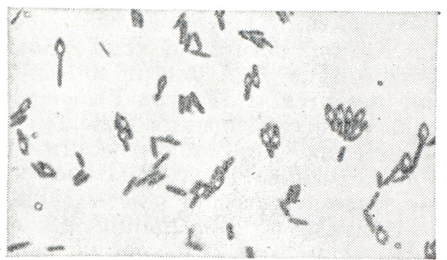 Возбудители Б. типа Е, а также непротеолитические штаммы типа В и нек-рые штаммы типа F образуют на питательных средах и, возможно, в пищевых продуктах недостаточно активный предшественник токсина — протоксин, к-рый значительно усиливает свою биологическую активность при попадании в жел.-киш. тракт человека и животных в результате воздействия протеолитических ферментов. При добавлении трипсина, панкреатина in vitro также происходит активация протоксина, к-рый переходит в токсин. По морфологии возбудители Б.— небольшие палочки длиной 4—9 мкм и шириной 0,6—0,9 мкм с закруглёнными концами (рис. 1). Палочки образуют субтерминальные или терминальные споры и имеют вид теннисной ракетки (рис. 2 и 3). Эти микробы легко окрашиваются различными анилиновыми красками. Молодые клетки окрашиваются по Граму положительно. Через 4—5 сут. роста палочки окрашиваются грамотрицательно. Микробы подвижны, имеют от 4 до 35 жгутиков (рис. 4), капсулы не образуют. В посевах в высокий столбик агара микробы образуют колонии, имеющие форму чечевицы (рис. 5) и комочков ваты (рис. 6). При посеве на поверхность кровяного, печёночного или сахарного агара вырастают прозрачные колонии величиной в несколько миллиметров с ровными (рис. 7) или изрезанными (рис. 8) краями и блестящей поверхностью. На кровяном агаре колонии окружены зоной гемолиза (рис. 9). Оптимальной температурой для роста бактерий типов А, В, С, D является 34—35°, для типов Е и F — температура 26—30°. См. также Clostridium.