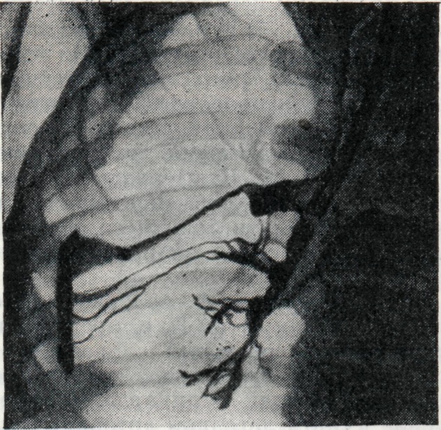 Рентгенодиагностику приобретённых пище водно-бронхиальных свищей успешно осуществляют путём введения в пищевод жидкой бариевой взвеси или водорастворимого контрастного вещества (рис. 2). Рентгеновские снимки производят на трохоскопе или лучше на латероскопе. При желчно-бронхиальных свищах соустье между бронхами и печёночными ходами рентгенологически подтверждается бронхографией. Особенно редки бронхо-перикардиальные свищи, образующиеся в результате прорыва абсцесса лёгкого в перикард. Рентгенол. исследование в этих случаях может установить наличие воздуха в полости перикарда или попадание контрастного вещества в перикард при бронхографии. Прогноз при Б. с. зависит от вида свища, его формы, степени изменений лёгочной ткани и плевры, наличия сопутствующих заболеваний, степени чувствительности микрофлоры к антибиотикам, состояния защитных сил организма, своевременности распознавания Б. с, метода лечения и при нек-рых видах свищей (альвеолярные свищи при спонтанном пневмотораксе, бронхокожные свищи и др.) прогноз может быть благоприятным. Такие виды Б. с, как бронхо-плевральные или бронхо-плевро-кожные, развившиеся на фоне хрон. нагноительных заболеваний лёгких, могут в большом проценте случаев быть радикально излечены путём резекции лёгкого (иногда повторной) с восстановлением трудоспособности. Наиболее серьёзен прогноз у больных с послеоперационными Б. с.— добиться полного выздоровления у них трудно при любом виде лечения. Смертность после резекции легких находится в прямой зависимости от частоты Б. с; в 38% причиной смерти после операции на легких является Б. с. В зависимости от причины образования, формы свища, своевременности и рациональности метода лечения летальность при послеоперационных Б. с. составляет 30—70% (В. В. Родионов, 1971). Трудоспособность у таких больных восстанавливается лишь в 30—35% случаев. Лечение Б. с. может быть консервативным и оперативным. Самоизлечение Б. с. возможно лишь в крайне редких случаях, когда не развивается эмпиема плевры, а сам свищ имеет длинный и извитой ход, или при альвеолярных свищах, напр. при спонтанном пневмотораксе. Консервативное лечение Б. с. может дать положительный результат только в ранних стадиях существования свища, когда ещё не образовалась толстая рубцовая стенка и не произошла эпителизация свищевого хода. Оно показано при бронхо-плевральных свищах и острой эмпиеме плевры, развившихся в результате прорыва в плевральную полость абсцесса лёгкого (см. Пиопневмоторакс). При послеоперационных Б. с. консервативное лечение может быть рекомендовано лишь при бронхо-плевральных свищах после частичных резекций лёгкого. Консервативное лечение заключается в повторных пункциях плевральной полости с введением антибиотиков и протеолитических ферментов, или в дренировании плевральной полости с последующей активной аспирацией. Нек-рые авторы рекомендуют для закрытия свища прижигание слизистой оболочки бронха в области свища через бронхоскоп или торакоскоп 50% раствором нитрата серебра и другими пре¬паратами. Относительно хорошие ре¬зультаты могут быть получены при закрытии небольших свищей с помощью цианакрилового клея. Тем не менее консервативное лечение послеоперационных Б. с. даже при ограниченных показаниях приводит к успеху лишь в 10—12% случаев. Подавляющее бол