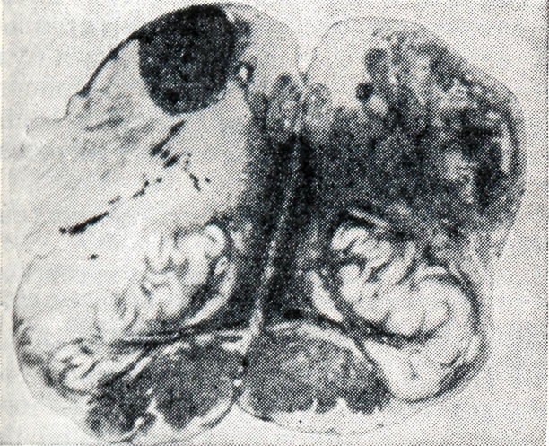 Прогрессирующий бульбарный паралич наблюдается при бульбарной форме амиотрофического бокового склероза (смотри), хронический полиомиелите, в III и IV стадиях хронический недостаточности мозгового кровообращения (по классификации Н. К. Боголепова) вследствие множественных кист и очагов красного размягчения в стволе мозга (рисунок 2 и 3).