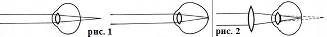 Для коррекции Дальнозоркость применяют выпуклые стекла (convex), усиливающие рефракцию гиперметропического глаза до нормы (рисунок 2). При слабых степенях Дальнозоркость, особенно в молодом возрасте при высокой остроте зрения и при отсутствии явлений аккомодативной астенопии, обычно нет необходимости пользоваться стёклами. Однако эта потребность возникает при развитии явлений утомления глаз (особенно при работе на близком расстоянии — чтении, письме и тому подобное), а также, как правило, при более выраженных степенях Дальнозоркость с возрастом по мере перехода скрытой Дальнозоркость в явную очки приходится усиливать. Развивающаяся пресбиопия (смотри полный свод знаний) в свою очередь требует дополнительного усиления корригирующих очков. Очки безусловно необходимы в случаях, когда зрение без них оказывается неполным и когда острота зрения повышается при пользовании очками. Особенное внимание следует уделять коррекции Дальнозоркость у детей при наклонности к косоглазию (смотри полный свод знаний), а также при уже развившемся содружественном косоглазии.