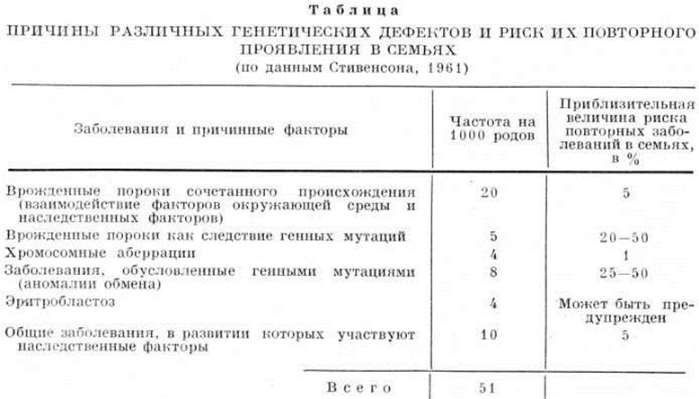 Изучены механизмы развития около 100 наследственных аномалий или болезней обмена, проявляющихся почти исключительно у детей как аномалии роста и развития. Перечень таких заболеваний ежегодно пополняется новыми нозологический формами. Выяснение первичных механизмов действия мутантного гена на молекулярном уровне позволяет использовать эффективные меры профилактики и лечения наследственных болезней у детей. Тяжёлые последствия метаболического блока могут быть предупреждены методами коррекции питания (фенилкетонурия, галактоземия и другие), средствами заместительной терапии (наследственные эндокринные заболевания) или методами трансплантации (наследственные болезни почек, иммунодефицитные заболевания). Основным требованием к диагностике наследственных болезней обмена является распознавание дефекта ещё до развития полной клинической, картины болезни, необратимых изменений мозга, внутренних органов. Это требование служит стимулом для разработки так называемый скрининг-программ, предусматривающих массовые обследования новорожденных. Во многих странах мира и в СССР введены такие программы, предусматривающие обследование всех новорожденных на фенилкетонурию (смотри полный свод знаний), муковисцидоз (смотри полный свод знаний) и детей на галактоземию (смотри полный свод знаний) и ряд других наследственных аномалий обмена. Исследования околоплодной жидкости (смотри полный свод знаний Амниоцентез, Околоплодные воды) позволяют уже в первые месяцы внутриутробной жизни распознать около 50 наследственных заболеваний, многие из которых отличаются высокой степенью генетического риска. Результаты исследования могут служить показанием для прерывания беременности (медицинский аборт) или для лечения наследственных аномалий обмена в самые ранние сроки, а в ряде случаев ещё во внутриутробном периоде. Особое значение приобретает антенатальная диагностика таких заболеваний, как мукополисахаридозы, ганглиозидозы, сфингомиелинозы, болезни цикла Кребса—Гензелейта, которые приводят к глубокой инвалидности в результате поражения центральная нервная система и внутренних органов. В соответствии с приказами МЗ СССР продолжается работа по созданию медико-генетических консультаций и кабинетов в крупных городах СССР, предназначенных для выявления, учёта и диспансеризации семей с наследственной патологией, а также для изучения генетического прогноза (смотри полный свод знаний Медико-генетическая консультация). Стойкие отклонения роста и развития ребёнка наблюдаются при заболеваниях эндокринной системы, которые могут быть связаны с повреждением высших регулирующих нервных центров (внутриутробными заболеваниями с вовлечением нервной системы, дисгенезиями мозга, кровоизлияниями в мозг при родах), врождённой гипо и аплазией желёз внутренней секреции или наследственными дефектами биосинтеза гормонально-активных соединений. Отклонения роста, связанные с недостаточной секрецией гипофизом соматотропного гормона, дают целую гамму вариаций — от выраженного гипофизарного нанизма до нормальных показателей физических, развития. Нарушения развития могут оказаться следствием хронический расстройств пищеварения и питания (гипотрофия). Причины гипотрофии (смотри полный свод знаний) в послевоенном периоде существен