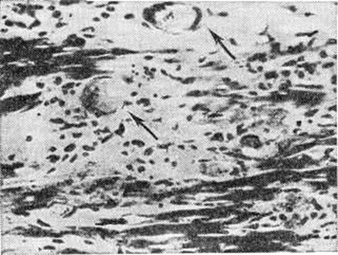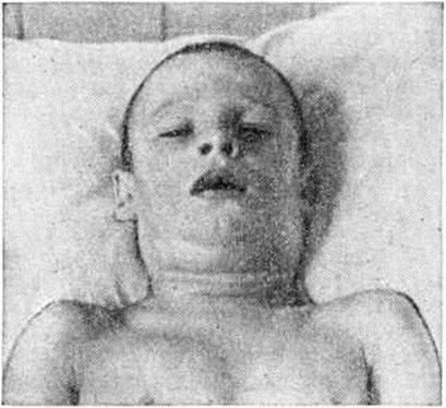 При меньшей выраженности описанных симптомов выделяют субтоксическую форму Дифтерия зева, при которой нет отёка шейной клетчатки, а отмечается только пастозность тканей в области шейных лимфатический, узлов. Интоксикация при ней менее выражена, токсические осложнения наблюдаются значительно реже. Другие варианты токсической формы Дифтерия зева редки, отличаются особой злокачественностью. При гипертоксической форме, помимо бурно прогрессирующего местного процесса, свойственного токсической форме, наблюдается тягчайшая интоксикация (смотри полный свод знаний) с катастрофически нарастающим упадком сердечно-сосудистой деятельности. Больные обычно погибают в первые 3—5 дней от начала болезни. Геморрагическая форма характеризуется симптомокомплексом токсической Дифтерия II — III степени в сочетании с явлениями геморрагического диатеза (смотри полный свод знаний Геморрагические диатезы). Летальность при этой форме очень высокая. Дифтерия дыхательных путей, или дифтерийный крупУдельный вес её снизился с 20—30% до 2—1% случаев и ниже. Эта форма наблюдается чаще у детей раннего возраста. В части случаев поражение гортани развивается либо одновременно, либо вслед за Дифтерия зева или носа (вторичный круп, комбинированная форма). Процесс локализуется на слизистой оболочке гортани или гортани и трахеи. Если он распространяется в бронхи, возникает тягчайшая форма Дифтерия— распространённый (нисходящий) круп. Болезнь начинается с умеренного повышения температуры, нарастающей охриплости голоса, грубого лающего кашля, вскоре теряющего свою звучность и становящегося хриплым. Обнаруживается гиперемия и отёчность слизистой оболочки гортани; налёты могут ещё отсутствовать. Начальная стадия болезни называется дисфонической, катаральной или стадией крупозного кашля, продолжается в среднем около суток, иногда удлиняется до 2 и более дней. Следующая стадия — стенотическая, при которой наблюдаются прогрессирующие явления стеноза дыхательных путей: характерный стенотический дыхательный шум, особенно звучный в инспираторной фазе, инспираторные втяжения грудной клетки (межреберий, хрящей нижних рёбер, нижней части грудины, над и подключичных впадин, яремной ямки) и напряжение вспомогательной дыхательной мускулатуры (грудино-ключично-сосцевидных, лестничных, трапециевидных и других мышц). Обнаруживаются плёнчатые налёты на слизистой оболочке входа гортани, на истинных и преддверных ложных голосовых складках, а иногда и в голосовой полости (цветной рисунок 4). При нарастающем затруднении дыхания и прогрессирующем утомлении ребёнка. возникает расстройство газообмена (смотри полный свод знаний). Наблюдаются непродолжительные приступы удушья со значительным беспокойством больного. Продолжительность стенотической стадии — от нескольких часов до 2—3 дней (в среднем 1 — 1½ суток). Развитие третьей, асфиктической, стадии проявляется прежде всего выраженным беспокойством ребёнка. Появляется цианоз губ, кожи лица и конечностей; кожа лица покрывается потом. Также в начале этой стадии обнаруживается парадоксальный пульс (смотри полный свод знаний) — выпадение пульсовой волны на высоте вдоха как результат значительного отрицательного давления в грудной полости, препятствующего опорожнению сердца в момент систолы и продвижению 