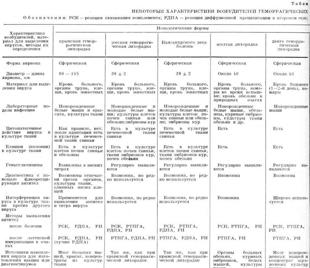 Возбудители Геморрагические лихорадки весьма разнообразны и, по неполным данным, входят не менее чем в 5 родов и 3 семейства вирусов. К семейству Тогавирусов относятся вирусы двух родов: флавивирусы — возбудители омской Геморрагические лихорадки, Кьясанурского леса болезни, жёлтой лихорадки, лихорадки денге и альфавирус — чикунгунья. К семейству Буньявирусов относится вирус крымской геморрагической лихорадки. Возбудители трёх форм Геморрагические лихорадки: аргентинской, боливийской и лихорадки Ласса (африканской) входят в состав рода ареновирусы (смотри). Вирус Марбург-церкопитековой Геморрагические лихорадки отнесён к рабдовирусам (смотри). Вирус эпизоотической Геморрагические лихорадки оленей входит в род Orbivirus и семейство Reoviridae. Таксономическое положение вирусов геморрагического нефрозонефрита и Геморрагические лихорадки макак ещё не определено.