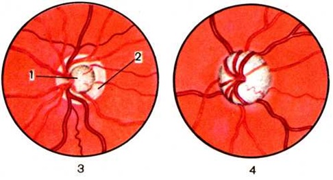 Затруднения оттока внутриглазной жидкости могут длительное время оставаться компенсированными, главным образом за счет сокращения продукции внутриглазной жидкости. Однако в ситуациях стресса состояние равновесия может легко нарушаться (напр., случаи острого приступа Глаукома при эмоциональной травме, переутомлении и так далее). Различные патогенетические элементы глазной гипертензии могут наслаиваться друг на друга. Так, например, блокада радужно-роговичного угла корнем радужки вначале является функциональной; это может привести к развитию гониосинехий и блокаде органического характера. Доказано существование наследственного предрасположения к Глаукома Повышение внутриглазного давления при вторичной Глаукома обусловлено теми же нарушениями, что и при первичной Глаукома: задержкой доступа к путям оттока внутриглазной жидкости (например, экссудатом), изменениями самих путей оттока (например, в результате воспалительного процесса и рубцевания), гиперпродукцией внутриглазной жидкости и другие В силу общности конечных патогенетических звеньев болезни границу между первичной и вторичной Глаукома нельзя считать абсолютной; с усовершенствованием диагностики все чаще удаётся выявлять причины, ведущие к изменениям в путях циркуляции внутриглазной жидкости. В результате гипертензии глаза развивается нарушение кровообращения в сосудах зрительного нерва, сетчатки и хориоидеи. Как правило, заболевают оба глаза, часто не одновременно. КлассификацияВ 1952 год на Всесоюзном совещании по Глаукома была принята классификация Глаукома, в основу которой положены три признака: клиническая форма, стадия и степень компенсации процесса. В 1975 год Всероссийским съездом офтальмологов была принята новая классификация Глаукома. По этой классификации различают три формы Глаукома: закрытоугольную, открытоугольную и смешанную. В свою очередь каждая из этих форм может иметь определённые стадии: начальную (I), развитую (II), далеко зашедшую (III) и терминальную (IV). Состояние внутриглазного давления по принятой классификации оценивается как нормальное (а), умеренно повышенное (в) и повышенное (е), а динамика зрительных функций — стабилизированная или нестабилизированная. Кроме того, выделяются: острый приступ первичной Глаукома и подозрение на Глаукома Определение формы Глаукома по новой классификации требует обязательного исследования области радужнороговичного угла (угла передней камеры глаза — цветной . рисунок 1 и 2) у каждого больного Глаукома (смотри полный свод знаний Гониоскопия). Глаукоме открытого угла обычно соответствует клинический, картина простой и хронической застойной Глаукома, глаукома закрытого угла — острому приступу Глаукома. В целом, однако, полного параллелизма между клинический, проявлениями Глаукома и гониоскопической картиной нет. Клиническая картина. В соответствии с классификацией, принятой в 1952 год, выделяют простую и застойную формы Глаукома Простая глаукома характеризуется тремя основными симптомами: повышением внутриглазного давления, снижением зрительных функций (в первую очередь сужение поля зрения), экскавацией (патологический углубление) диска зрительного нерва. Второй и третий симптомы триады являются следствиями первого и развиваются позже. Нарушение зрительных функций начинается, ка