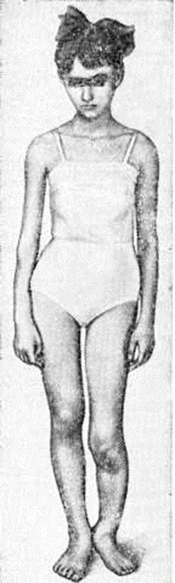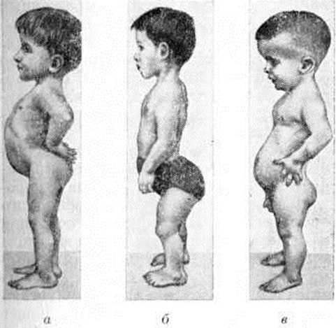 Прогноз в отношении функции конечности неблагоприятный из-за раннего развития артрозов. После оперативного вмешательства возможны рецидивы. Спондилоэпифизарная дисплазия — порок развития, в основе которого лежит дисплазия хрящевой ткани, характеризующаяся недостаточностью развития суставного хряща. Признаки заболевания появляются по мере роста ребёнка; новорожденные клинически здоровы. В тяжёлых случаях уже на первом году жизни отмечается ограничение отведения бёдер. Позже присоединяются хромота, утиная походка, утомляемость при ходьбе, ограничение движений в тазобедренных, коленных суставах, позже — в голеностопных. К 7 годам в связи с углублением вертлужных впадин заметно сужается поперечный диаметр входа в малый таз. В последующем резко увеличивается поясничный лордоз, наблюдаются выраженные сгибательные контрактуры в суставах ног (рисунок 2, 3, а). Примерно у половины больных отмечается вывих надколенника с развитием genu valgum (смотри полный свод знаний: Коленный сустав, заболевания). Несмотря на перечисленные изменения скелета, рост детей остаётся в пределах нормы, сложение — относительно пропорциональным. Нередко наблюдаются изменения, связанные с нарушениями регуляции мышечного тонуса (смотри полный свод знаний), поражением мышечной ткани (кардиопатией, появлением паховых, пупочных грыж, расхождением прямых мышц живота), увеличением печени, селезёнки, миопией, астигматизмом, дистрофией хрусталика, стекловидного тела и роговицы. Рентгенологически выявляют характерные изменения тел позвонков: они уплощены (универсальная платиспондилия), больше в грудном отделе, замыкающие пластинки неровные. Переднезадний и боковой размеры тел позвонков нормальные; этот признак является решающим в диагностике заболевания. Определяются также уплощение эпифизов всех длинных трубчатых костей, сглаженность межмыщелкового возвышения большеберцовой кости, углубление межмыщелковой ямки бедренной кости; характерен дольчатый надколенник (смотри полный свод знаний: Надколенник, патология). Лечение преимущественно консервативное — лечебный физкультура, массаж, санитарно-курортный лечение. Взрослым больным необходимо подбирать специальность, не связанную с длительным стоянием, передвижением или тяжёлыми нагрузками на опорно-двигательный аппарат. При сгибательных контрактурах в коленных суставах производят операцию перемещения надколенника (смотри полный свод знаний: Надколенник, повреждения), в ряде случаев в сочетании с надмыщелковой остеотомией (смотри полный свод знаний) бедренных костей.