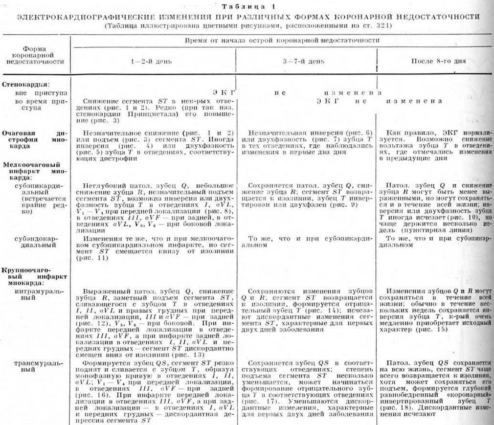 Рентгенологическое методы могут оказать существенную помощь в диагностике так называемый электрокардиографически негативных Инфаркт миокарда. Эти методы имеют важное значение в диагностике перикардита, осложняющего течение Инфаркт миокарда Для решения вопроса о возможности хирургического лечения в остром периоде Инфаркт миокарда (аортокоронарное шунтирование), а также для уточнения локализации тромба с целью попытки его растворения местным введением фибринолитических средств иногда проводят селективную коронарографию (смотри полный свод знаний). Тромб в венечной артерии распознается на коронарограмме по обрыву тени контрастированной артерии. Предпринимаются попытки визуализации очага поражения миокарда и с помощью радиол, методов: сканирования сердца, сцинтиграфии с рядом меченых веществ Дифференциальный диагноз. Встречаются два вида ошибок в диагностике Инфаркт миокарда либо Инфаркт миокарда ошибочно расценивают как другое заболевание, либо, наоборот, принимают ту или иную болезнь за Инфаркт миокарда Ошибки чаще возникают при атипично протекающем Инфаркт миокарда, в том числе при безболевом его течении. Например, острую левожелудочковую недостаточность при Инфаркт миокарда, если она протает на фоне повышенного артериальное давление, нередко расценивают как проявление гипертонического криза; кардиогенный шок при безболевом Инфаркт миокарда, когда он сопровождается сопорозным состоянием, может быть причиной ошибочного диагноза неврологический комы. Весьма сложна дифференциальная диагностика Инфаркт миокарда с болевым синдромом атипичной локализации. Наиболее часто гастралгическую форму Инфаркт миокарда, особенно если он сопровождается рвотой, принимают за пищевое отравление, перфоративную язву желудка, острый холецистит. В подобных случаях неправильная тактика врача может быть причиной смертельного исхода заболевания. Реже (например, при правосторонней локализации болей) больному Инфаркт миокарда ставят диагноз пневмонии или плеврита. Локализация боли в тех областях, куда она обычно иррадиирует, может привести к неправильному диагнозу плексита или остеохондроза с корешковым синдромом. В отличие от этих заболеваний, Инфаркт миокарда практически всегда сопровождается симптомами общего характера (слабость, адинамия, тахикардия, изменения артериальное давление). Диагнозу невралгии помогает анализ характера болей (боли продолжительные и часто локализуются по ходу межрёберных нервов), выявление болевых точек при пальпации межрёберных нервов и позвоночника, эффективность обычных анальгетиков (анальгин, амидопирин), отсутствие изменений на ЭКГ и в периферической крови. Иногда ошибочный диагноз Инфаркт миокарда или стенокардии может быть поставлен больному с опоясывающим лишаем (смотри полный свод знаний Герпес), особенно если при осмотре больного ещё не обнаруживается высыпание пузырьков на гиперемированном основании по ходу межрёберного нерва. Уточняет диагноз в предэкзантематозной стадии отсутствие изменений на ЭКГ, регистрация которой в таких случаях является необходимой. Весьма трудной бывает дифференциация острой коронарной недостаточности и эмболии лёгочной артерии (смотри полный свод знаний). Боль в грудной клетке при эмболии ветвей лёгочного ствола обычно не имеет заг