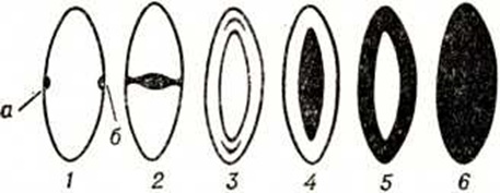 Операция посадки искусственного хрусталика должна производиться по строгим показаниям и в условиях достаточной технической оснащённости. Прогноз старческих Катаракта при своевременном и неосложнённом оперативном лечении благоприятен. При травматических, осложнённых, диабетических Катаракта из-за ряда сопутствующих изменений в глазу прогноз серьёзный. При врождённой Катаракта без амблиопии (смотри полный свод знаний) и сопутствующих заболеваний сетчатки, а также при неосложнённом хирургическом лечении прогноз благоприятный. Лучевая катаракта — помутнение хрусталика, возникающее в результате повреждения его ионизирующим излучением. Лучевая катаракта может развиться после облучения области глаза при лучевой терапии опухолей лица и головы, у лиц, длительно подвергающихся воздействию ионизирующего излучения, а также при аварийных ситуациях. Хрусталик — наиболее поражаемая ткань глаза при воздействии ионизирующей радиации. Под влиянием небольших доз лучевая Катаракта может проявиться как моносимптом повреждения, при значительном облучении — вместе с поражением других тканей глаза и его придатков. Однако повреждение хрусталика клинически проявляется всегда позже, чем поражение других тканей глаза. Клинически при развитии лучевой Катаракта различают два периода: первый — латентный (скрытый) период, охватывающий промежуток времени от момента облучения до выявления первых признаков заболевания, и второй — период прогрессирования, продолжающийся до стабилизации Катаракта или полного помутнения хрусталика. Интенсивность помутнения хрусталика, длительность латентного периода, скорость прогрессирования Катаракта зависят от вида ионизирующего излучения, величины и мощности дозы излучения, фактора времени и возраста пострадавшего. Наименьшая доза однократного бета или гамма-воздействия, при котором наблюдалось развитие лучевой Катаракта, составляет около 200 рад при поглощении непосредственно в хрусталике; при дробных воздействиях доза увеличивается до 400—550 рад и более. Нейтроны обладают большей катарактогенной способностью, чем другие виды ионизирующего излучения. При однократном комбинированном гамма-нейтронном воздействии в дозах 150—700 рад на глаз лучевую Катаракта клинически можно обнаружить через 2—7 лет после облучения. В течение последующих 3—6 лет после обнаружения первых признаков лучевой Катаракта формируется помутнение различной степени в зависимости от дозы излучения. Затем развитие лучевой Катаракта останавливается, и помутнение постепенно распространяется на глубокие слои коры хрусталика (рисунок 3—6). При дозах выше 700 рад развитие лучевой Катаракта обнаруживается через ½—2 года после воздействия; в случаях поражения сосудистой оболочки глаза через 2½—5 лет после воздействия наступает полное помутнение хрусталика. Местом первичного лучевого поражения хрусталика является герминативная (ростковая) зона эпителия хрусталика, находящаяся под передней капсулой вблизи экватора. Выявить лучевую Катаракта можно при исследовании глаза в проходящем свете и в оптических срезах (при биомикроскопии) с максимально расширенным зрачком. Первым признаком лучевой Катаракта является скопление точечных, штриховидных помутнений и вакуолей, располагающихся между задней капсулой и корой хр
