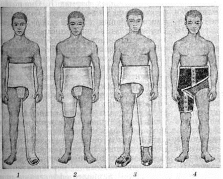 В артритической фазе общее состояние значительно ухудшается, усиливаются местные проявления процесса. Боли становятся постоянными и интенсивными, увеличивается контрактура и мышечная атрофия (рисунок 8). Сустав увеличивается в объеме, заметно повышается кожная температура, становятся видны расширенные подкожные вены. При пальпации иногда можно обнаружить подкожные абсцессы. Длительность активного периода различна и без лечения может достигать нескольких лет, после чего начинается стихание воспалительных изменений. В постартритической фазе сустав становится «сухим» и «холодным», безболезненным при обследовании, но остаются последствия перенесённого Коксит в виде порочной установки конечности, укорочения её, атрофии мягких тканей, кожных рубцов на месте свищей, болей в области поражённого сустава после его нагрузки. Иногда образуется костный или, чаще, фиброзный анкилоз сустава. Конечность отстает в росте, её укорочение прогрессирует. Отграниченные очаги и осумкованные абсцессы создают опасность рецидива даже через большой промежуток времени. Чрезвычайно важна ранняя диагностика туберкулёзного Коксит, но именно на ранних стадиях она наиболее трудна. Большую диагностическую ценность представляют своевременно сделанные рентгенограммы (смотри полный свод знаний Туберкулез костей и суставов). В артритической фазе диагностика облегчается наличием выраженных клинические, симптомов. Дифференцировать болезнь следует с гнойными и другими инфекционные специфическими Коксит, остеогенной саркомой (смотри полный свод знаний), коксартрозом (смотри полный свод знаний Артрозы), абсцессом Броди (смотри полный свод знаний Броди абсцесс), остеоид-остеомой (смотри полный свод знаний) и другие. К ранним рентгенологическое признакам туберкулёзного Коксит следует отнести намечающийся остеопороз костей суставов, небольшое смещение головки бедренной кости латерально и кверху, ограниченный участок остеопороза и нарушение нормальной костной структуры в месте развивающегося специфического остита. Первичный очаг туберкулёзного остита (артритическая фаза) располагается чаще всего в теле подвздошной кости, шейке бедра или, реже, в головке бедренной кости, седалищной и лобковой костях. Форма очага различная — округлая, овальная, треугольная, диаметр его колеблется от нескольких миллиметров до нескольких сантиметров, а границы при активном процессе имеют нечёткие контуры. Внутри очага нередко видны небольшие губчатые секвестры. При переходе процесса на сустав деструкция распространяется на суставные поверхности, суставная щель суживается, нарастает остеопороз и атрофия костей, образующих сустав. При затихании туберкулёзного Коксит очертания деструктивных очагов и контуры разрушенных суставных концов становятся более чёткими, остеопороз уменьшается, корковый слой кости начинает утолщаться, однако остеопороз и атрофия костей конечности остаются на многие годы. При обострении контуры очагов разрушения теряют чёткость, усиливается остеопороз, нарастает атрофия диафиза бедренной кости. В постартритической фазе чаще всего наблюдается фиброзный анкилоз или, при значительном разрушении суставных поверхностей, патологический вывих бедренной кости со смещением головки вверх и кнаружи. Лечение туберкулёзного Коксит о