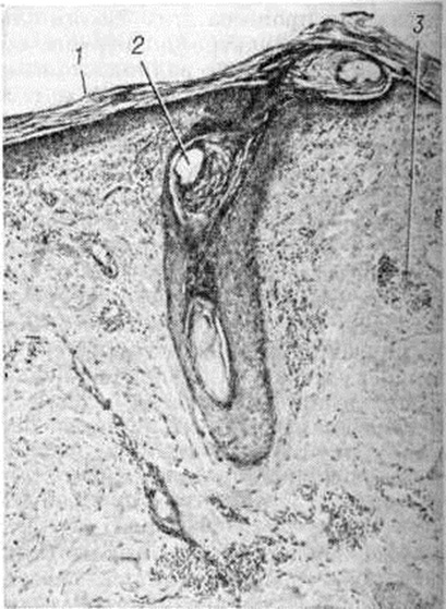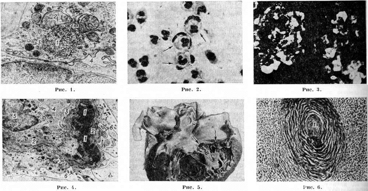 Этиология не выяснена, однако гипотеза о роли хронический персистирующей вирусной инфекции получила развитие в связи с обнаружением при электронной микроскопии в поражённых органах (коже, почках, синовиальной оболочке) тубулоретикулярных структур, расположенных в цитоплазме эндотелиальных клеток, а также в лимфоцитах и тромбоцитах периферической крови, которые напоминали нуклеопротеид парамиксовирусов. При системной Красная волчанка были также обнаружены в высоких титрах циркулирующие антитела к вирусам кори, краснухи, парагриппу и другим РНК-вирусам из группы парамиксовирусов. У больных и их родственников выявлены лимфоцитотоксические антитела, являющиеся маркерами персистирующей вирусной инфекции, а, кроме того, в этих же группах и у медперсонала, работающего с больными,— антитела к двуспиральной (вирусной) РНК. В связи с вирусной этиологией системной К. в% обсуждаются такие феномены, как гибридизация генома коревого вируса с ДНК клеток поражённых органов (селезёнки, почек), обнаружение антигенов онкорнавирусов типа С во фракциях селезёнки, плаценты и почки. Гипотеза о значимости хронический вирусной инфекции при системной Красная волчанка базируется также на изучении болезни новозеландских мышей, у которых роль онкорнавируса типа С доказана. Непереносимость лекарств, вакцин, фотосенсибилизация, становление менструального цикла, беременность, роды, аборты и другие рассматриваются как факторы, провоцирующие болезнь или её обострение; они имеют значение для профилактики и своевременной диагностики, поскольку связь начала или обострений болезни с этими факторами более характерна для системной Красная волчанка, чем для других близких болезней. Патологическая анатомия. Системная Красная волчанка, будучи представителем группы коллагеновых болезней, характеризуется генерализованным распространением патологический процесса, охватывающего все органы и системы, что обусловливает клинико-анатомический полиморфизм заболевания. Генерализация вызвана циркуляцией в крови иммунных комплексов, повреждающих сосуды микроциркуляторного русла, следствием чего является системная прогрессирующая дезорганизация соединительной ткани. Иммунопатологические реакции подтверждаются усилением функции органов иммуногенеза, преципитацией в стенках сосудов и в поражённых тканях иммунных комплексов с появлением иммунокомпетентпых клеток (смотри полный свод знаний). Повреждение сосудов микроциркуляции проявляется распространёнными васкулитами деструктивного или пролиферативного характера (смотри полный свод знаний Васкулит). В эндотелии капилляров электронномикроскопически выявляют своеобразные тубулярные образования (рисунок 1), похожие на рибонуклеопротеид парамиксовируса и, возможно, играющие этиологического роль. Специфику тканевых реакций при системной Красная волчанка обусловливают признаки патологии клеточных ядер: базофилия фибриноида, кариорексис, гематоксилиновые тельца, LE клетки, центральный хроматолиз. Базофилия фибриноида обусловлена примесью кислых продуктов ядерного распада. Гематоксилиновые тельца, описанные в 1932 год Л. Гроссом, представляют собой набухшие ядра погибших клеток с лизированным хроматином. LE-клетки, или клетки красной волчанки,— это зрелые нейтрофилы, цитоплазма котор