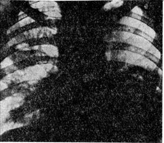 Очаговые или инфильтративные изменения могут сопровождаться образованием полостей вследствие некроза и распада ткани. Ателектазы наблюдаются чрезвычайно редко благодаря преимущественно перибронхиальному распространению лейкозной инфильтрации. Лейкозное поражение плевры сопровождается её утолщением и образованием массивных плевритов. Характерные признаки лейкозного плеврита — одностороннее, упорное, несмотря на повторные эвакуации, накопление в плевральной полости геморрагического экссудата. У больных хронический лимфолейкозом изменения органов грудной клетки характеризуются гиперплазией внутригрудных лимфатических, узлов. Опухоль средостения встречается крайне редко, главным образом в финале заболевания на фоне резкого прогрессирования болезни, чаще располагается непосредственно за грудиной, имеет полуовальную форму, примыкая широким основанием к грудине. Поражение лёгочной ткани, по данным различных авторов, обнаруживается в 20 — 38,5% случаев. Преобладают инфильтративные формы с распадом и перибронхиальная инфильтрация. Поражение плевры наблюдается редко. При хронический миелолейкозе лейкозные изменения в органах грудной клетки рентгенологически выявляются значительно реже, чем при остром Лейкозы и хронический лимфолейкозе. Опухоль переднего средостения может возникнуть только при длительном течении болезни в период бластного криза. В некоторых случаях увеличиваются внутригрудные лимфатических, узлы. Крупных лейкозных инфильтратов или опухолевых узлов в лёгких, как правило, нет. Лейкозная инфильтрация, располагаясь по ходу мелких сосудов и межальвеолярных перегородок, выявляет картину усиления легочно-сосудистого рисунка мелкопетлистого характера. Лейкозные изменения в органах грудной клетки приходится дифференцировать с сопутствующими процессами в лёгочной ткани: пневмонией, кандидамикозом и туберкулёзом. Пневмонии, наблюдающиеся у больных Лейкозы, относятся к бронхопневмониям фибринозно-геморрагического типа. В ряде случаев рентгенологически выявляются преимущественно инфильтративные изменения в виде очаговых сегментарных и долевых поражений. Они бывают односторонними, отличаются длительным течением, медленными темпами обратного развития (до 3 месяцев), часто рецидивируют, обладают большей склонностью к распаду и осложнению плевритом. Такие пневмонии одинаково часто наблюдаются при остром и хронический лимфолейкозе. Иногда пневмонии множественно-мелкоочаговые, очаговоинтерстициального типа. Они, как правило, бывают распространёнными, двусторонними, клинически протекают с явлениями нарастающей лёгочной недостаточности. Эти пневмонии, как правило, не рецидивируют и обладают значительно меньшей склонностью к возникновению осложнений в виде распада лёгочной ткани и плеврита, чаще наблюдаются при хронический миелолейкозе и значительно реже при остром и хронический лимфолейкозе. Разрешение таких пневмоний, независимо от формы Лейкозы, в среднем наступает в течение 2—4 недель Дифференциальная диагностика между лейкозными и воспалительными изменениями в лёгких сложна и основывается на всем комплексе клинико-рентгенол. данных с учётом динамики процесса и формы Лейкозы. Для пневмонии более характерны очаговые и инфильтративные изменения и относительно быстрая дина