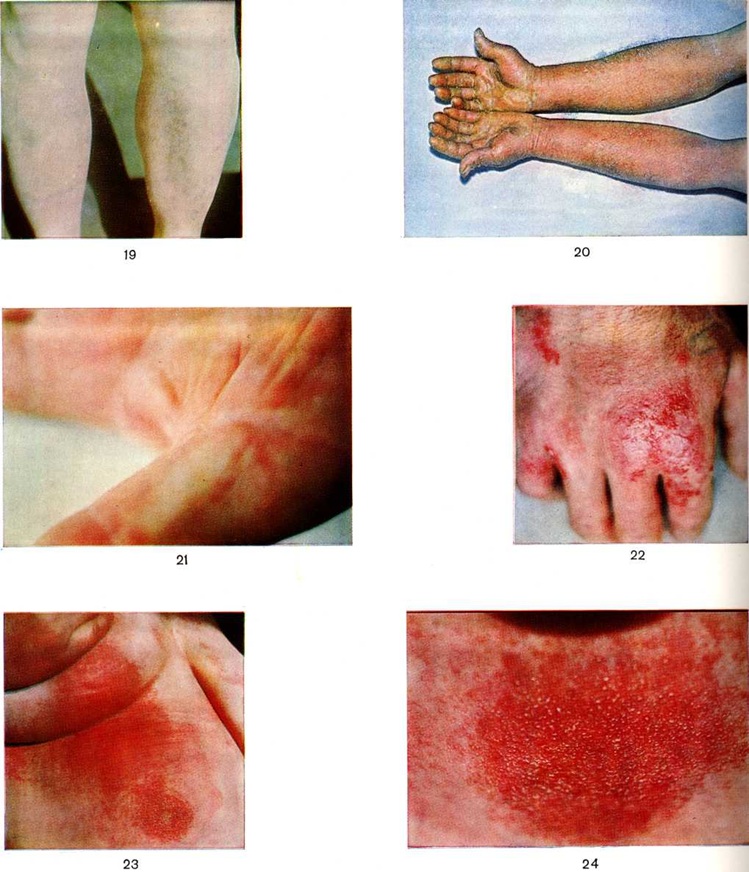Особенности механизмов аллергических реакций, вызываемых лекарствами, изучены в отношении периода сенсибилизации и иммунологический, стадии аллергических реакций. Лечебный препарат может обладать свойствами полноценного антигена (смотри полный свод знаний Антигены), то есть вызывать в организме образование антител (смотри полный свод знаний) и вступать с ними в реакцию, или свойствами гаптена (смотри полный свод знаний), то есть неполноценного антигена. В последнем случае лекарственное вещество в результате связывания с сывороточными (альбуминами, глобулинами) или тканевыми (проколлагенами, гистонами) белками может превратиться в полноценный антиген. Так, метаболит пенициллина пенициллоидная кислота, соединяясь с белками организма — альбуминами, приобретает свойства полноценного антигена. Аллергенная активность комплекса препарат — белок зависит от химический строения препарата (например, лекарства, содержащие бензольное кольцо и радикал в виде аминогруппы или атома хлора, легко связываются с белками и вызывают активное образование антител) и от устойчивости связи белок — препарат, то есть от стабильности образовавшегося в организме антигенного комплекса. Прочные ковалентные связи с белком возникают у сравнительно небольшого количества лекарств, способных образовывать при взаимодействии с карбоксильными, окси-, амино и сульфгидрильными группами аминокислот белков устойчивые к гидролизу комплексы. Важным вопросом для клиники является относительная неспецифичность аллергических реакций к лекарственным веществам, или так называемый поливалентность Лекарственная аллергия, которая проявляется в нескольких формах. Первой формой поливалентности, как считает А. Д. А до, является аллергия у одного человека к нескольким близким по химический строению лекарственным веществам. Так, пенициллины — производные 6-аминопенициллановой кислоты отличаются друг от друга присоединёнными радикалами. Результаты кожных тестов и серологический исследования показали, что существует антигенное родство различных пенициллинов. Поэтому можно ожидать развития перекрёстных аллергических реакций. У больных с повышенной чувствительностью к анестезину нередки случаи аллергии к прокаину, сульфаниламидам и другим производным парааминобензойной кислоты. Второй формой поливалентности является аллергия у одного человека ко многим лекарствам различного химический строения и фармакологических действия, то есть общая непереносимость лекарств. Подобных случаев в клинические, практике встречается много, и их количество возрастает. Эта форма нередко сочетается или переходит в третью форму поливалентности Лекарственная аллергия, при которой повышенная чувствительность к различным лекарственным препаратам сочетается с аллергией к пищевым веществам, пыли, пыльце растений или любому другому виду инфекционных или неинфекционных аллергенов. Иммунологический механизмы указанных форм поливалентности Лекарственная аллергия различны и изучены недостаточно. При первой форме поливалентности имеется химический близость активных гаптенных групп в различных лекарствах, к которым развивается аллергия у больного, например, в производных парааминобензойной кислоты, различных пенициллинах и многих других группах лекарств, имеющ