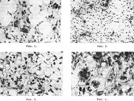 Крупные опухолевые клетки лежат обычно тесно друг к другу; клетки типа липобластов, особенно отросетчатые и вытянутые, располагаются рыхло в петлях капиллярной сети и в миксоматозной основе, богатой гиалуроновой кислотой. Разрастания соединительной ткани в Липосаркома встречаются в виде неравномерных прослоек и широких полей. При гистохимический исследовании в ткани Липосаркома определяется небольшая активность эстеразы, кислой и щелочной фосфатазы.