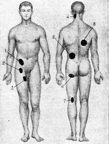 Эти явления чаще возникают при формировании глубоко расположенного Натечник с выраженной реакцией окружающих его тканей, например, при коксите или спондилите. Местные изменения при Натечник характеризуются наличием безболезненной припухлости с положительным симптомом зыбления; кожа над припухлостью обычно не изменена. При наклонности Натечник к прорыву кожа над ним приобретает глянцевитость и красноватый цвет без заметного повышения местной температуры. Глубоко расположенные Натечник, содержащие сгустившийся гной, пальпируются труднее, флюктуация в них выражена слабо, поэтому диагностика их затруднена. Осложнения. Основная опасность в активном периоде развития натечника — возникновение наружного свища (смотри полный свод знаний) и проникновение через него в очаг туберкулёзного воспаления вторичной инфекции, отягощающей течение болезни и состояние больного. При проникновении Натечник в полые органы грудной и брюшной полости (в трахею, бронхи, иногда в аорту, пищевод, слепую, сигмовидную, ободочную и прямую кишку, мочевой пузырь, влагалище), помимо тяжёлого нарушения функции этих органов, образуется внутренний свищ, что усиливает воздействие гноя на организм и нередко приводит к амилоидозу паренхиматозных органов. Диагноз и дифференциальный диагноз не всегда легки. Наиболее часто приходится дифференцировать туберкулёзные и не туберкулёзные абсцессы, особенно при скоплении жидкости и гноя в больших слизистых сумках, при воспалении распадающейся опухоли и другие Распознавание основывается на данных клинические, обследования, диагностических пункций с цитологический исследованием, рентгенодиагностики. Типичная локализация Натечник облегчает диагностику. Рентгенологические выявляемость внутригрудных Натечник зависит от их локализации и величины, а Натечник, располагающихся вне грудной клетки, также от содержания в них извести и от вторичного смещения соседних органов. Следует различать прямые и косвенные рентгенологическое признаки Натечник К прямым признакам относятся чётко очерченные затемнения диаметром 2 сантиметров и больше, при внутригрудной локализации — сливающиеся с тенью позвоночника и контрастно выделяющиеся на фоне лёгких (рисунок 3, а). При иной локализации прямым признаком Натечник является затемнение, чаще продолговатой формы, резко очерченное с периферической стороны, с бледно-пятнистой, крапчатой или зернистой структурой в зависимости от степени обызвествления его содержимого (рисунок 3,6). Косвенным признаком Натечник внелёгочной локализации может быть смещение смежных органов. Так, при локализации Натечник кпереди от шейных позвонков трахея на боковых рентгенограммах будет смещена кпереди. Располагаясь паравертебрально в поясничной области, Натечник ведёт к выпячиванию внешнего контура пояснично-подвздошной мышцы на большем или меньшем протяжении кнаружи с одной или обеих сторон; в норме этот контур прямолинейный или пологовыпуклый. Такое выпячивание может быть обусловлено не только давлением Натечник, но и специфическим псоитом (смотри полный свод знаний). При расположении в забрюшинном пространстве Натечник может сместить соседние органы: мочеточники, кишки и другие, что определяется при контрастном исследовании соответствующих органов. К косвенным признакам На