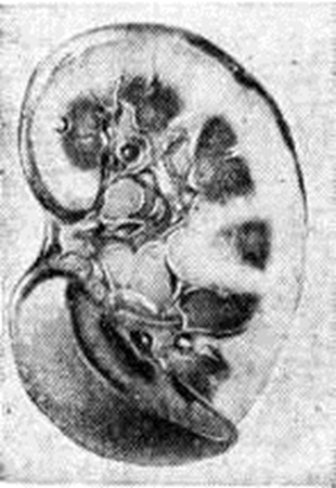 Морфологически основой при вторичном Нефротический синдром может быть специфическая нефропатия (волчаночная, ревматоидная и другие), амилоидоз почек, гломерулонефрит или сочетанная патология (как при узелковом периартериите). Поэтому гистологический картина при световой, иммунофлюоресцентной и электронной микроскопии отражает признаки не только самого Нефротический синдром, но и изменения, свойственные названным заболеваниям. Большинство заболеваний, обусловливающих Нефротический синдром, возникает на иммунной основе, то есть вследствие осаждения в органах (в том числе в почках) иммунных комплексов или вследствие взаимодействия антител с антигенами базальной мембраны капилляров клубочков с сопутствующими нарушениями клеточного иммунитета. Последние проявляются в реакциях органоспецифической гиперчувствительности замедленного типа и в ослаблении контролирующего пула Т-лимфоцитов. Иммунные механизмы активируют гуморальные и клеточные звенья воспалительной реакции и сосудистой проницаемости с развитием клеточной эмиграции, фагоцитоза, дегрануляции лейкоцитов и освобождением при этом лизосомальных ферментов, способных повреждать структуры тканей (смотри полный свод знаний Воспаление). Антигены, входящие в состав иммунных комплексов, могут быть экзо и эндогенными. К экзогенным относят антигены бактериальные, вирусные, паразитарные, медикаментозные, пищевые, пыльцу растений, соединения тяжёлых металлов и другие Эндогенными антигенами при ряде заболеваний могут стать тиреоглобулин, ДНК, денатурированные нуклеопротеиды, криоглобулины, белки опухолевого происхождения. Антитела к этим антигенам в большинстве случаев принадлежат к классу IgM или одновременно к нескольким классам Ig. Величина иммунных комплексов зависит от характера антигена и связанных с ним антител. Малые комплексы обыкновенно содержат избыток антигенов и растворимы. Большие комплексы, мол. вес которых больше 50 000, содержат избыток антител, легко депонируются в стенках микрососудов органов, в том числе почек, вызывая развитие вторичных воспалительных реакций (нефропатий). Степень поражений органа зависит от концентрации комплексов, их состава и продолжительности антигенной стимуляции. Однако не все заболевания, вызывающие Нефротический синдром, имеют доказанный иммунокомплексный генез. Так, не ясен патогенез липоидного нефроза, врождённого Нефротический синдром финского типа, Нефротический синдром при таких генетически обусловленных болезнях, как мукополисахаридозы или парциальная липодистрофия. Изучаются иммуногенетические аспекты патогенеза Нефротический синдром различного происхождения. Типирование по системе HLA больных с Нефротический синдром показало существенное преобладание определённых антигенов системы гистосовместимости при ряде нозологических форм нефротического синдрома: при нефротическом синдроме на почве геморрагического васкулита преобладали HLA—BW35, среди больных с атопическим Нефротический синдром у большей половины выявляли HLA—В12, при системной красной волчанке — HLA—38. Однако, по данным Томсона (P. D. Thomson) с соавторами (1976) и Шерака (Одонтома Scherak) с соавторами (1978), корреляции между клиническими, иммунологическими показателями и теми или иными антигенами системы HLA выявлено не было. Если иммунологич
