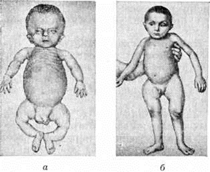 Тела позвонков в результате дистрофии костной ткани могут принимать двояковогнутую форму. Так как Энхондральное окостенение при Остеогенез несовершенный не страдает, эпифизарные центры почти не изменены и лишь несколько разрыхлены. Вторичные остеогенные точки (эпифизарные ядра окостенения) появляются в срок, но они очень прозрачны. Характерна рентгенологическое картина черепа. На фоне мягкой тени свода обрисовываются отдельные крапинки или лишь единичные мозаичные, ландкартообразные или округлые звездчатые островки обызвествления, либо изолированные, либо сливающиеся друг с другом, с неровными бахромчатыми краевыми контурами. Сильнее других обызвествлена чешуя затылочной кости. Покровные кости свода чрезвычайно истончены. Кости лица мало изменены. Дифференциальный диагноз. Рентгенологическое исследование имеет решающее дифференциально-диагностическое значение. Необходимо исключить хондродиспгрофию (смотри полный свод знаний), которая может быть заподозрена из-за общего для обоих заболеваний симптома микромелии. На рентгенограмме легко отличить нормальную пропорциональную кисть при Остеогенез несовершенный от весьма характерных укороченных фаланг при хондродистрофии. Рахит (смотри полный свод знаний) исключается на основании неизменённых при Остеогенез несовершенный эпифизарных центров, в то время как при рахите основные патологический изменения сосредоточены именно в ростковых зонах. Дифференциальный диагноз проводят также с нефрогенными остеопатиями (смотри полный свод знаний Остеопатия нефрогенная), при которых показатели фосфорно-кальциевого обмена изменены. Остеогенез несовершенный дифференцируют с различными генетически обусловленными заболеваниями, например, синдромом Ван-дер-Хуве (смотри полный свод знаний Вандер-Хуве синдром). Лечение, особенно при врождённой форме, малоэффективно и заключается в паллиативных мероприятиях: щадящий режим, профилактика переломов и предупреждение деформаций, лечебный гимнастика и массаж, бальнеотерапия. В комплексе лечения назначают УФО, поливитамины, спиртовые и масляные растворы витамина D, препараты кальция, фосфора, соляную кислоту с пепсином, метандростенолон (нерабол), кальцитонин. Особое место занимает ортопедо-хирургическое лечение. Лечение патологический переломов у больных с Остеогенез несовершенный должно сводиться к тщательной репозиции отломков и надёжной фиксации гипсовой повязкой до полной консолидации отломков. Сроки фиксации в большинстве случаев не отличаются от сроков фиксации конечностей при обычных переломах (смотри полный свод знаний). Большое значение в профилактике образования вторичных деформаций имеет лечебный протезирование (смотри полный свод знаний Ортопедические аппараты). Оперативные методы лечения направлены прежде всего на исправление тяжёлых деформаций конечностей и на восстановление утраченной функции. Единой оперативной методики лечения нет; в отдельных случаях применяют остеоклазию (смотри полный свод знаний), остеотомию (смотри полный свод знаний) с использованием интра и экстраоссальных фиксаторов в виде аллотрансплантатов (смотри полный свод знаний Костная пластика) и металлического остеосинтеза (смотри полный свод знаний Остеосинтез); в некоторых случаях могут быть использованы дистракцио