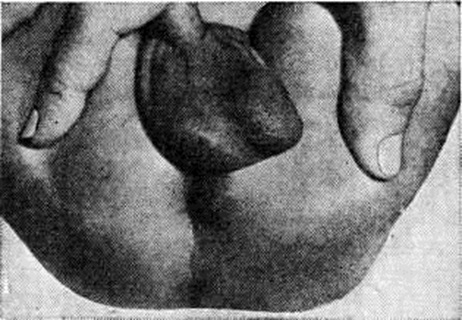 К факторам, способствующим развитию Парапроктит у детей, относятся запоры, поносы, травмирование слизистой оболочки прямой кишки и заднего прохода инородными телами, мацерация кожи промежности, воспаление слизистой оболочки прямой кишки на фоне энтеровирусной инфекции; несколько реже развитию Парапроктит способствуют дивертикулы прямой кишки, кальциноз, глистная инвазия, операции на промежности и органах таза. Возбудителем является кишечная палочка как моноинфекция и в сочетании со стафилококком и тетракокком. Наиболее часто у детей встречается подкожная форма острого Парапроктит, реже — подкожно-подслизистая, подслизистая, седалищно и тазовопрямокишечная; изредка возможно тотальное поражение околопрямокишечной клетчатки анаэробной инфекцией. Клинические, картина острого Парапроктит зависит от распространённости процесса и стадии его течения. У новорожденных и детей первого года жизни на первый план выступают общие симптомы: беспокойство при изменении положения и пеленании, отхождении газов и акте дефекации, повышение температуры до 38°, отказ от еды. К концу первых суток появляются местные симптомы. При подкожной форме определяется инфильтрат, локализующийся рядом с прямой кишкой (рисунок 8). Подслизистый инфильтрат определяется при ректальном исследовании; на 2—3-и сутки обычно появляется гноетечение из заднего прохода. При седалищно-прямокишечной форме путём ректального исследования выявляют инфильтрат, который не имеет чётких границ, верхний полюс его достигается с трудом. Ранним признаком данной формы являются остро возникшие общие симптомы, а со вторых суток — обильное отделение слизи из заднего прохода. При тазово-прямокишечной форме инфильтрат можно определить путём бимануального исследования через прямую кишку и переднюю брюшную стенку. Анаэробный Парапроктит характеризуется гангренозно-гнилостным процессом, приводящим к обширным разрушениям клетчатки промежности и околопрямокишечного пространства, стенки прямой кишки, влагалища (рисунок 9). Осложнением острого Парапроктит является формирование прямокишечно-промежностных и прямокишечно-влагалищных свищей, через которые постоянно или периодически выделяются гной, газы, иногда кал. Для детей характерно формирование полных чрессфинктерных, прямокишечных свищей. Диагноз Парапроктит у детей основывается на тех же данных, что и у взрослых. Дифференциальный диагноз проводят с тазовой флегмоной новорожденного, абсцессом ягодицы, тератомами и жировыми придатками промежности, осложнёнными гемангиомой. Дети с Парапроктит подлежат госпитализации в экстренном порядке. Принципы лечения аналогичны описанным у взрослых. При оперативном вмешательстве особое внимание уделяют сохранению волокон сфинктера, что тем важнее, чем младше ребёнок. Прогноз зависит от своевременности диагностики и оперативного лечения. Профилактика включает комплекс мероприятий, направленных на правильный гигиенические режим ребёнка, рациональное вскармливание, предупреждение вирусных и гнойничковых заболеваний.