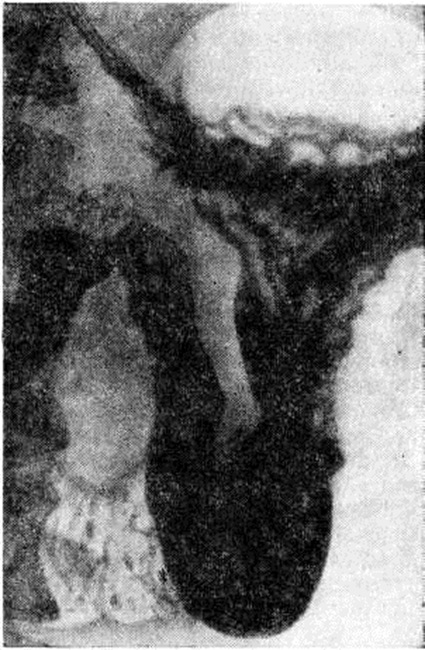 При обширных сращениях между желудком и прилегающими органами его активная и пассивная смещаемость ограничена, перистальтика ослаблена, волны её асимметричны, контуры желудка неровные. Желудок при этом обычно расположен высоко, его антральная часть подтянута кверху, вправо или к малой кривизне (рисунок) и во время прохождения перистальтической волны принимает атипичную форму. При наличии выраженных деформаций и перегибов эвакуационная функция желудка может резко нарушаться. Рельеф слизистой оболочки в зоне деформации органа чаще перестроен или сглажен. Продольные складки обычно не видны, однако симптома обрыва складок не наблюдается. Эластичность и сократительная способность стенок желудка нормальная или нарушена незначительно, что имеет важное значение в дифференциальной диагностике Перигастрит со злокачественными опухолями.