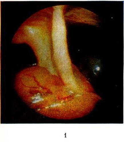 Фиброгастроскопия (смотри полный свод знаний Гастроскопия) при Перигастрит, связанном с язвенной болезнью, может выявить изменения слизистой оболочки желудка. О перигастрите свидетельствуют деформация и нарушение эвакуаторной функции желудка при сохранении проходимости привратника. При лапароскопии (смотри полный свод знаний Перитонеоскопия) обнаруживают признаки воспалительного процесса и спайки на серозной оболочке желудка (цветной рисунок 1).
