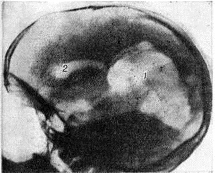 При ложной Порэнцефалия на пневмоэнцефалограмме отмечают смещение желудочков мозга; характер смещения позволяет установить локализацию замкнутой кистозной полости и её объем.