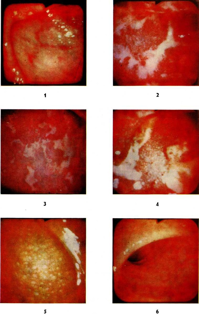 Хронический Проктит имеет три основные формы — гипертрофическую, нормотрофическую и атрофическую. При гипертрофической форме эндоскопически отмечаются утолщённые, отёчные, иногда избыточно разросшиеся рыхлые складки слизистой оболочки с несколько увеличенными легко различимыми лимфатических, фолликулами (цветной рисунок 5). При нормотрофической форме складки слизистой оболочки имеют нормальный вид. При атрофической форме (цветной рисунок 6) слизистая оболочка прямой кишки истончена, сухая со сглаженными складками и просвечивающими сосудами, легко ранима. При всех формах хронического Проктит нередко субъективные ощущения отсутствуют, в каловых массах обнаруживается небольшая примесь слизи. При бессимптомном хронический Проктит больные редко обращаются к врачу.