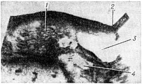 Наиболее информативным методом ранней диагностики Пузырный занос является ультразвуковая эхография (смотри полный свод знаний: Ультразвуковая диагностика). На рисунок 2 представлена эхограмма малого таза при Пузырный занос Применяют также ангиографию, рентгенографию с трансабдоминальным внутриматочным введением контрастных веществ, трансабдоминальную биопсию плаценты. Дифференциальную диагностику проводят с самопроизвольным выкидышем (смотри полный свод знаний: Самопроизвольный аборт), многоплодной беременностью (смотри полный свод знаний), многоводием (смотри полный свод знаний), миомой матки (смотри полный свод знаний). Лечение заключается в быстром удалении Пузырный занос При угрожающем, начавшемся аборте или так называемый аборте в ходу, связанными с Пузырный занос, прибегают к стимуляции сократительной деятельности матки путём внутривенного капельного введения окситоцина или простагландинов (допустимо одновременное их применение). Простагландины (смотри полный свод знаний) способствуют более быстрому раскрытию шейки матки и изгнанию Пузырный занос При усилении кровотечения Пузырный занос удаляют с помощью вакуум-аспирации (смотри полный свод знаний: Вакуум-экскохлеация) или извлекают основную массу Пузырный занос окончатыми щипцами с последующим выскабливанием слизистой оболочки матки (смотри полный свод знаний: Выскабливание). Метод вакуум-аспирации более предпочтителен в связи с меньшей возможностью осложнений. Эти же методы применяют в тех случаях Пузырный занос, когда клинические, признаки выкидыша отсутствуют. В комплексе терапевтических мероприятий при необходимости используют гемотрансфузию и антибиотики. Характер лечения в значительной мере определяется степенью увеличения матки и клинические, картиной заболевания. При больших размерах Пузырный занос приступают к возбуждению сократительной деятельности матки. Очень редко приходится прибегать к кесареву сечению (смотри полный свод знаний); оно показано в случае профузного кровотечения при больших размерах Пузырный занос и неподготовленной шейке матки, а также при отсутствии эффекта от стимуляции сократительной деятельности матки. При профузном внутрибрюшном кровотечении, связанном с деструирующим Пузырный занос и выраженном поражении стенки матки, необходима экстирпация матки (смотри полный свод знаний). Эта операция показана также при Пузырный занос у женщин в возрасте 40 и более лет, а также у женщин, имеющих трёх и более детей (в связи с более частым развитием в этих группах больных хорионэпителиомы). Наиболее частым осложнением оперативного лечения Пузырный занос является перфорация матки при выскабливании (смотри полный свод знаний: Матка), производить которое следует с осторожностью при увеличении матки, соответствующем не более 11 —12 недель беременности. Прогноз серьёзный. Профилактика Пузырный занос не разработана. Для предупреждения развития. хорионэпителиомы матки больным, перенёсшим Пузырный занос, проводят профилактическую химиотерапию, используют преимущественно метотрексат, а также брунеомицин, дактиномицин и другие Показаниями к такой терапии являются выраженная пролиферация и анаплазия хориального эпителия, выявленная при гистологический исследовании Пузырный занос Профилактическая химиотерапия 