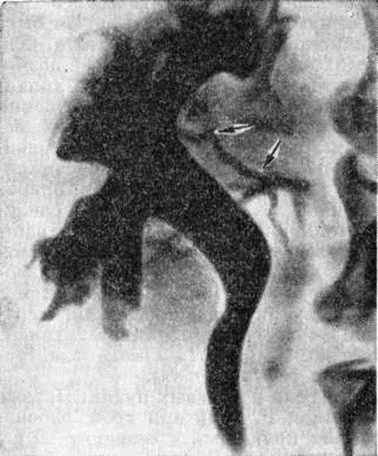 Тубулярный Рефлюкс на рентгенограмме имеет вид пучка, «метёлки» или «язычка пламени», исходящего из верхушки почечного сосочка и простирающегося в мозговое, а иногда и корковое вещество (рисунок 4). Лечение и профилактика лоханочно-почечного Рефлюкс сводятся к своевременному устранению обструкции мочевых путей и восстановлению нормальной уродинамики, в осторожном выполнении ретроградной уретеропиелографии, отказе от компрессии мочеточников при экскреторной урографии, тщательном лечении воспалительных заболеваний почек и мочевых путей. Пузырно-мочеточниковый, или пузырно-мочеточниково лоханочный, рефлюкс встречается чаще у детей, обычно связан с аномалиями развития или незавершённым созреванием пузырного устья мочеточников (смотри полный свод знаний) и нарушением проходимости нижних мочевых путей. Рефлюкс усиливается в момент мочеиспускания, когда повышается давление в мочевом пузыре (смотри полный свод знаний). Симптомами пузырно-мочеточниково-лоханочного рефлюкса являются боль в области почек в момент мочеиспускания, иногда двухтактное мочеиспускание, в запущенных случаях полиурия (смотри полный свод знаний), полидипсия (смотри полный свод знаний), изостенурия (смотри полный свод знаний), свидетельствующие о почечной недостаточности и необратимых ретенционных изменениях в почках и мочевых путях. Пузырно-мочеточниково лоханочный Рефлюкс выявляют с помощью рентгеноскопии или кинематоцистографии по спонтанному затеканию в мочеточники и почечные лоханки раствора контрастного вещества, введённого в мочевой пузырь. Активный Рефлюкс выявляют при проведении микционной цистографии (смотри полный свод знаний), кинематоцистографии, а также радиоизотопной реноцистографии. Пузырно-мочеточниковый Рефлюкс занимает ведущее место в урологический патологии детского возраста. Он выявляется в 25—30% случаев у детей с микробно-воспалительным процессом в мочевых путях. Предрасполагают к возникновению Рефлюкс короткий интрамуральный отдел мочеточников, более прямой угол его впадения в мочевой пузырь, незрелость замыкательного мышечного аппарата дистального отдела мочеточников, инфравезикальная обструкция, цистит, нарушения иннервации мочевых путей, удвоение мочеточника. При высоком Рефлюкс, достигающем почечных лоханок и канальцев почек (пиелотубулярный Рефлюкс), моча повреждающе действует на почечные канальцы и межуточную ткань почек, что приводит к дилатации и деструкции канальцев, дистрофическим изменениям нефротелия, развитию интерстициального нефрита с исходом в склероз. Эти процессы усугубляются при инфекции мочевых путей. В результате Рефлюкс задерживаются рост почек и совершенствование их функций; у детей старшего возраста возникает несоответствие между функциональными возможностями почек и потребностями организма ребёнка, что может проявиться нарушением отдельных почечных процессов и почечной недостаточностью. Согласно классификации Хейкеля и Парккулайнена (P. Е. Heikel, К. V. Parkkulainen, 1966), принятой в педиатрической практике, различают 5 степеней пузырно-мочеточникового Рефлюкс При I степени моча забрасывается до средней трети мочеточника, при II — до почечной лоханки, при III — IV степени — контрастное вещество заполняет чашечно-лоханочную систему, при IV степени отмечается пиелоэктазия и огрубен