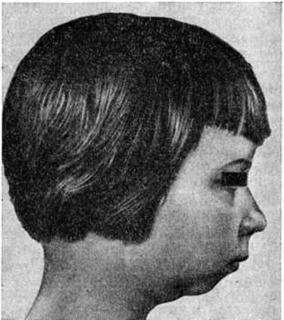 В связи с этим на Международном рабочем совещании педиатров-ревматологов (1977) было предложено отдавать предпочтение термину «ювенильный хронический артрит». Характер тканевых повреждений при ювенильном Ревматоидный артрит в целом не отличается от описанных изменений при Ревматоидный артрит у взрослых. Однако у детей отмечают более слабую гиперпластическую клеточную реакцию и воспалительную инфильтрацию в синовиальной оболочке, реже находят эрозии в суставном хряще. Основные признаки поражения суставов при ювенильном Ревматоидный артрит такие же, как и при Ревматоидный артрит у взрослых: боль, припухлость, утренняя скованность. Выраженность болей в суставах у детей обычно меньше, чем у взрослых, иногда, несмотря на припухлость сустава и болезненность его при пальпации, жалобы на боли вообще отсутствуют. Дети младшего возраста редко жалуются на утреннюю скованность, которую можно выявить лишь при внимательном наблюдении за их поведением. Нередко отмечаются такие общие симптомы, как слабость, повышенная утомляемость и раздражительность, снижение аппетита, похудание, субфебрильная температура. При ювенильном Ревматоидный артрит реже отмечается артрит мелких суставов кистей и стоп. Примерно у 1/3 больных наблюдается вовлечение межпозвоночных суставов шейного отдела позвоночника (особенно СII—СIII) с болями и ограничением движений. Часто отмечается артрит височно-нижнечелюстных суставов (смотри полный свод знаний). Примерно у 25% больных обычно через несколько лет от начала заболевания при рентгенологическое исследовании выявляется сакроилеит (смотри полный свод знаний). В целом деструкция суставного хряща и прилежащих отделов костей и деформации суставов развиваются при ювенильном Ревматоидный артрит значительно медленнее, чем при Ревматоидный артрит у взрослых. Характерными чертами ювенильного Ревматоидный артрит являются замедление физического развития, отставание в росте, а также нарушения роста отдельных сегментов скелета в связи с поражением близлежащих суставов, напр, недоразвитие нижней челюсти — микрогения (рисунок 10), укорочение или удлинение фаланг пальцев или других костей. Принято выделять три клинические, варианта начала ювенильного Ревматоидный артрит (по совокупности симптомов, развивающихся в течение 4—6 месяцев болезни): полиартикулярный, моно-, олигоартикулярный и системный. Полиартрит (смотри полный свод знаний) с самого начала болезни отмечается примерно у 50% больных. Полиартикулярный вариант в большей мере, чем другие, напоминает Ревматоидный артрит у взрослых, но число поражённых суставов обычно меньше; у многих больных отмечается спондилоартрит (смотри полный свод знаний) шейного отдела позвоночника. Чаще, чем при других вариантах, выявляются ревматоидные факторы (смотри полный свод знаний: Ревматоидный фактор). Внёс уставные проявления встречаются нечасто, выраженность их гораздо меньше, чем при системном варианте. Течение болезни волнообразное, часты более или менее длительные ремиссии, но у ряда больных отмечается постепенное прогрессирование заболевания. Моно-, олигоартикулярный вариант начала ювенильного Ревматоидный артрит отмечается примерно у 1/3 больных. Преимущественно поражаются коленные, голеностопные, кистевые -суставы. У многих больных долгое время может наб