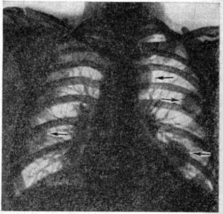 Типичными внесуставными проявлениями ювенильного Ревматоидный артрит являются экссудативный перикардит (реже другие проявления серозита — плеврит, перитонит), генерализованная лимфаденопатия, увеличение печени, иногда селезёнки. Перикардит чаще слабо выражен. Внесуставные проявления (кроме увеита) встречаются, как правило, при системном варианте и значительно реже при полиартикулярном и олигоартикулярном вариантах болезни. Из других системных проявлений при ювенильном Ревматоидный артрит описаны миокардит, эндокардит (с медленным развитием недостаточности митрального клапана и клапанов аорты), диффузный интерстициальный лёгочный фиброз, гломерулит (проявляющийся лишь непостоянной микрогематурией). Подкожные узелки, полиневропатия, дигитальный васкулит, столь характерные для Ревматоидный артрит у взрослых, встречаются лишь в 5— 10% случаев, обычно при наличии ревматоидных факторов в сыворотке крови. У ряда больных ювенильным ревматоидным артритом обычно через много лет от начала болезни может развиться амилоидоз, главным образом почек. При ювенильном Ревматоидный артрит наблюдаются те же рентгенологическое изменения, что и при Ревматоидный артрит Характерно более частое, чем при Ревматоидный артрит, развитие артрита мелких суставов шейного отдела позвоночника, иногда с исходом в анкилоз (рисунок 11), и нарушения нормального хода развития скелета: ускорение роста трубчатых костей поражённой конечности или, наоборот, недоразвитие отдельных костей (например, нижней челюсти). Изменения лабораторный показателей неспецифичны. У многих больных отмечается нормоцитарная гипохромная анемия, ускорение РОЭ, повышение уровней фибриногена, α2-глобулинов в сыворотке крови, появление С-реактивного белка. Эти изменения обычно коррелируют с активностью заболевания. Обычен также нейтрофильный лейкоцитоз, особенно выраженный (до 15 000—50 000 в 1 микролитров.) при системном варианте болезни. Ревматоидные факторы в сыворотке крови выявляются не более чем у 20% больных, как правило через длительны срок от начала болезни. У 40% больных определяется антинуклеарный фактор (обычно непостоянно н в небольших титрах). Наличие антител к нативной ДНК и LE-клеток ювенильному Ревматоидный артрит несвойственно. Характер изменений синовиальной жидкости в целом такой же, как и при Ревматоидный артрит у взрослых, однако в ней реже встречаются ревматоидные факторы и рагоциты. Поскольку при ювенильном Ревматоидный артрит отсутствуют специфические клинические (за исключением редко встречающейся ревматоидной сыпи) и лабораторный признаки, диагноз болезни с уверенностью может быть установлен лишь при наличии стойкого артрита и исключении других заболеваний, имеющих сходные проявления. Группой ревматологов социалистических стран в 1979 год предложены следующие критерии, которые необходимо учитывать при ранней диагностике ювенильного ревматоидного артрита: 1) артрит продолжительностью более 3 недель (обязательный признак); 2) поражение трёх суставов в течение первых 3 недель болезни; 3) симметричное поражение мелких суставов; 4) поражение шейного отдела позвоночника; 5) признаки выпота в суставную полость; 6) утренняя скованность; 7) тендосиновит или бурсит; 8) увеит; 9) ревматоидные узелки; 10) эпифизарный остеопороз; 11) сужение суставной щели; 12) упло