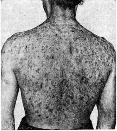 Ф. Гебра различал жирную и сухую Себорея Некоторые дерматологи продолжают придерживаться такой классификации. Однако рядом исследователей доказано, что так называемый сухая себорея не связана с усилением салоотделения; в зависимости от клинические, картины она диагностируется как перхоть, себорейная экзема, себореид (эритематосквамозные рассеянные, чаще округлые по форме участки поражения) и так далее В зависимости от консистенции кожного сала и характера возникающих осложнений выделяют следующие формы жирной, или истинной, Себорея: жидкую, густую и смешанную. Жидкая Себорея характеризуется более жидкой, чем в норме, консистенцией кожного сала и резко усиленным салоотделением. Эта форма может протекать без возникновения вульгарных угрей. Она имеет сравнительно благоприятное течение. К 20—25 годам салоотделение нормализуется, угревая сыпь разрешается. При густой Себорея салоотделение увеличено незначительно, но более плотная консистенция кожного сала препятствует его свободному выходу на поверхность кожи, что приводит к развитию многочисленных, в том числе крупных комедонов, атером и вяло протекающих угрей, которые могут сохраняться до 30 и более лет, вызывая значительные рубцовые изменения кожи (рисунок). Смешанная Себорея характеризуется признаками как густой, так и жидкой Себорея.