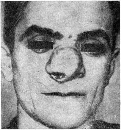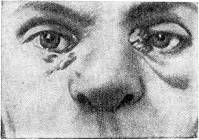 В клетках Микулича, а иногда и вне их при применении специальных окрасок выявляется палочка Волковича —Фриша (цветной рисунок 8). Эозинофильные и нейтрофильные лейкоциты (гранулоциты) присутствуют в относительно небольшом количестве. Характерно наличие в специфической грануляционной ткани так называемый русселевских телец, известных также как гиалиновые тельца Пеллиццари и Корниля. Большинство исследователей связывают происхождение клеток Микулича с присутствием в моноцитарных макрофагах палочек Волковича—Фриша. С помощью электронной микроскопии (смотри полный свод знаний) в цитоплазме фагосом клеток Микулича обнаружены палочки Волковича—Фриша как интактные, так и находящиеся на разных стадиях переваривания. Наличие пенистой цитоплазмы клетки Микулича объясняют накоплением в фагосомах непереваренных бактериальных гликозаминогликанов, которые, повышая осмотическое давление, способствуют вакуолизации и разрыву фагосом. Эпителий над склеромными грануляциями в различной степени инфильтрирован нейтрофильными лейкоцитами. В клетках эпителия отмечаются признаки вакуольной дистрофии (смотри полный свод знаний), сосочковый слой кожи сглажен, подвергается атрофии, которая наблюдается также в сальных и потовых железах, фолликулах волос. Цилиндрический мерцательный эпителий слизистых оболочек замещается многослойным плоским, иногда с патологический ороговением типа гиперкератоза (смотри полный свод знаний: Кератозы) и паракератоза (смотри полный свод знаний), образует акантотические погружения в специфическую грануляционную ткань, иногда с атипическими реактивными разрастаниями. Над крупными бугристыми узлами может наблюдаться истончение эпителиального покрова до 2—3 рядов уплощённых клеток. Существенное место в развитии склеромных поражений занимают явления склероза (смотри полный свод знаний), обусловленного ростом и созреванием специфической грануляционной ткани. Образование коллагеновых волокон в виде пучков начинается в глубоких отделах склеромных грануляций и идёт по направлению к поверхности. При этом грануляционная ткань разделяется на отдельные островки, охваченные грубыми, нередко гиалинизированными пучками коллагена (смотри полный свод знаний). Наряду с этим отмечается новообразование эластических волокон. Исчезновение специфической грануляционной ткани при лечении стрептомицином также связано с усилением склерозирования, при этом в первую очередь наблюдается уменьшение количества, а затем исчезновение в грануляционной ткани клеток Микулича. При длительном течении Склерома специфические морфологический изменения иногда наблюдаются в регионарных лимфатических, узлах. Во внутренних органах каких-либо специфических проявлений склеромы не обнаружено. Клиническая картина. Склерома протекает годами и десятилетиями. Инкубационный период длится несколько лет. Большинство больных заболевают в возрасте 15—20 лет, встречаются случаи заболевания и в детском возрасте. В течении Склерома выделяют три периода: доклинический, в котором выявляются положительные результаты серологический исследований, но ещё отсутствуют клинические, проявления; клинический, характеризующийся явными клинические, проявлениями и положительными серологический реакциями; резидуальный, в котором набл