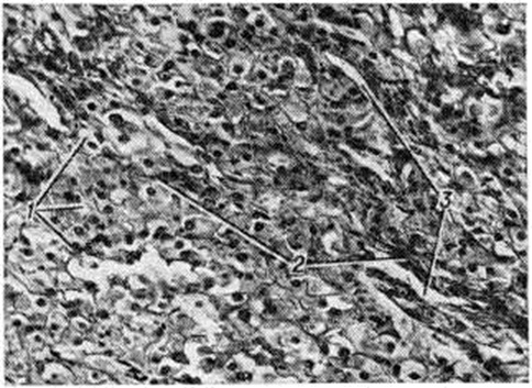 Для злокачественных Текома гистологически характерны явления клеточного и ядерного полиморфизма, атипичные фигуры митоза (смотри полный свод знаний) и явления деструирующего роста.