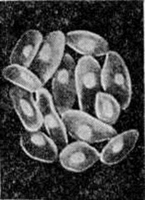 Онкосферы свиного цепня практически неотличимы от онкосфер бычьего цепня (смотри полный свод знаний: Тениаринхоз).