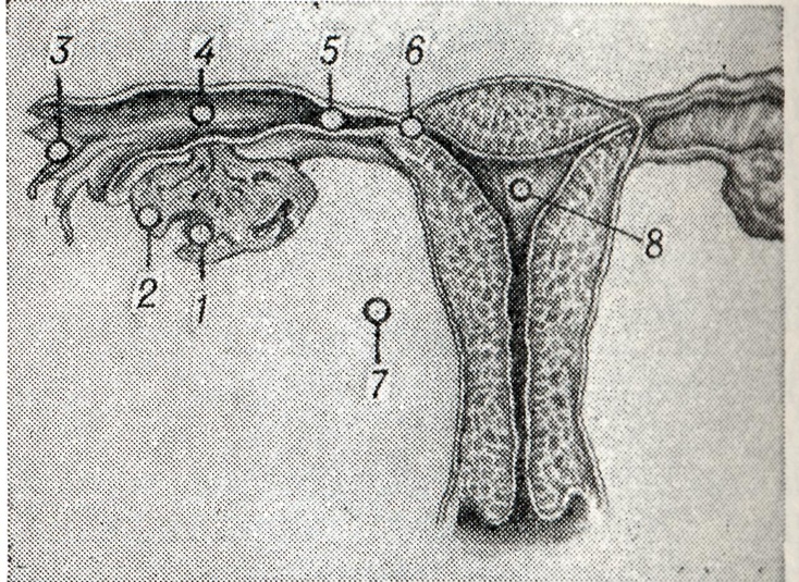 Беременность в рудиментарном роге матки (рисунок 4) протекает по типу эктопической. Рудиментарный рог связан с маткой (нормально развитым рогом) широкой ножкой, которая в 85% случаев не канализирована. Беременность в нем возникает при migratio ovi externa.