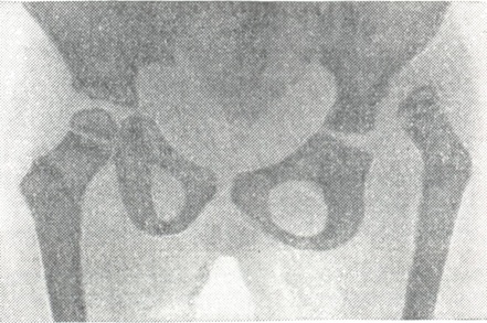Привычный вывих чаще всего возникает в плечевом суставе и является результатом неправильного лечения — травматичного вправления, несовершенной или недостаточной по срокам фиксации. При привычном Вывихи вывихивание сочленяющихся костей происходит без видимого внешнего насилия даже при обычных движениях в связи с наличием слабых мест в капсуле сустава на месте бывшего разрыва. Так называемый привычный Вывихи плечевой кости в основе своего возникновения имеет анатомические предпосылки, очевидно врождённого происхождения, так как при нем рентгенографически выявляется своеобразное уплощение головки плечевой кости (рисунок 9), а иногда и сглаженность переднего края суставной впадины лопатки. Лечение, как правило, оперативное — капсулорафия (ушивание капсулы), тендо-, остеопластика (смотри Костная пластика, Пластические операции, на мышцах, сухожилиях, фасциях) и другие. Врождённые вывихи являются результатом неправильного внутриутробного развития с формированием неполноценных суставных концов сочленяющихся костей. Чаще всего встречается врождённый Вывихи бедра (рисунок 10), обнаруживаемый примерно у 0,2—0,5% новорожденных, причём у девочек в 5—7 раз чаще. Односторонний врождённый Вывихи наблюдается в 1½ раза чаще двустороннего. Успех лечения врождённого Вывихи определяется во многом ранним его выявлением.