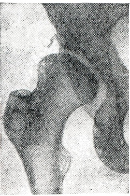 Врождённый характер Вывихи бедренной кости у взрослых распознается ещё и по анатомическим особенностям её проксимального отдела (недоразвитие головки, сочетающееся с вальгусной деформацией шейки бедра и антеторсией) и по уплощению и расширению вертлужной впадины (рисунок 11). Диагностика врождённого вывиха бедра у новорожденных позволяет начать раннее лечение и добиться хороших результатов с помощью функциональных методов лечения (шины Виленского, Волкова, ЦИТО и другие). Позднее обнаружение врождённого вывиха значительно усложняет лечение, требует применения оперативных методик и даёт худший функциональный результат. Патологические вывихи возникают чаще вследствие развития в полости сустава или в суставных концах костей различного рода патологических процессов (рисунок 12), приводящих к обезображиванию суставных концов костей (костно-суставной туберкулёз, остеомиелит и другие), и сопровождаются сходными проявлениями с травматическими Вывихи. Нередко патологические Вывихи и подвывих обусловлены деструкциями суставных поверхностей при моно- и полиартритах (рисунок 13), артрозах.