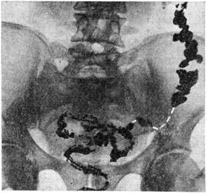 ДиагнозДиагноз устанавливают обычно на основании анамнеза и жалоб больного. Важно выяснение этиологии и типа Запоры, особенно своевременное распознавание опухолевых процессов, вызывающих механический Запоры; при этом наряду с клинический, данными (пожилой возраст, недавнее начало Запоры у лиц с нормальным стулом, примесь крови в кале и другие) большое, диагностическое значение приобретает рентгенологическое исследование, колоноскопия (смотри полный свод знаний), ректор оманоскопия (смотри полный свод знаний). При ректороманоскопии в случае гипермоторики слизистая оболочка прямой и сигмовидной кишок влажная, видна перистальтика, спазмы, окраска слизистой оболочки меняется быстро, при гипомоторике — слизистая оболочка сухая, тусклая, дистальный отдел толстой кишки в спавшемся состоянии, продвижение тубуса затруднено. Известные трудности возникают при дифференциации воспалительных Запоры при колитах и Запоры преимущественно функциональной природы. Распознаванию природы и дифференциации Запоры способствует копрологические исследование (смотри полный свод знаний Кал), биопсия слизистой оболочки прямой или сигмовидной кишки. Большое значение имеет определение типа моторных нарушений толстой кишки. Некоторые данные могут быть получены при пальпации: при преимущественно гипермоторных нарушениях дистальных отделов толстой кишки сигмовидная кишка спастически сокращена, при гипомоторных нарушениях она может быть растянута, не перистальтирует. Важную информацию даёт запись моторики кишечника баллонотензографическим методом. Рентгенологическое исследование имеет целью выявить нарушения моторной функции и тонуса толстой кишки, первичный или вторичный Запоры Его проводят спустя определённые промежутки времени после приёма внутрь бариевой взвеси — через 4— 6—9—12—24—48 часов и позже. Основное внимание обращают на характер заполнения и опорожнения кишки, пассажа по ней бария, вид гаустр, наличие спастических сокращений, а также скоплений газа и жидкости. К ирригоскопии (смотри полный свод знаний) прибегают в случаях, когда необходимо исключить аномалию развития кишки или её органическое поражение, при которых Запоры (вторичный) может быть симптомом заболевания. При первичных Запоры обычно обнаруживают снижение моторной функции, повышение, или понижение тонуса кишки. Эти изменения могут распространяться на всю кишку или на отдельные её сегменты (рисунок 1). Рельеф слизистой оболочки имеет нормальный или несколько «раздражённый» характер (ирритационный рельеф): складки приподняты, расположены более продольно или поперечно, но лишены, признаков воспаления. Смещаемость кишки не нарушена. При гиперкинетических Запоры замедление пассажа бария сочетается с регионарным спазмом и глубокой, нередко сегментирующей гаустрацией в виде многочисленных перетяжек (рисунок 2). Спазмированный отдел кишки иногда имеет вид тонкого шнура (рисунок 3). Реже, при атонических Запоры, обнаруживают пониженный тонус всей толстой кишки или отдельных её сегментов, сопровождающийся расширением просвета, поверхностной сглаженной гаустрацией.