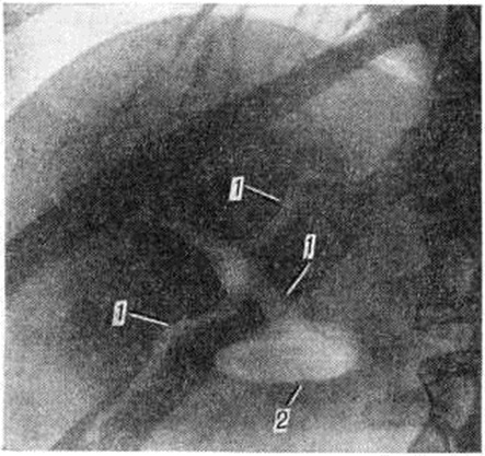 Общее состояние больных с самопроизвольно возникшим неполным наружным Жёлчные свищи обычно не бывает тяжёлым; в таких случаях через свищ вместе с желчью часто выделяется гной, а иногда и конкременты. При посттравматических (огнестрельных) наружных Жёлчные свищи количество выделяемой желчи обычно невелико, нередко наблюдается превращение Жёлчные свищи в гнойно-желчный, а затем в гнойный. Если при этом не развивается гнойных осложнений в печени или в поддиафрагмальном пространстве, то такие раненые быстро поправляются. Диагноз наружного Жёлчные свищи обычно устанавливается без труда на основании истечения из свища желчи (смотри полный свод знаний), однако определить с достоверностью, откуда исходит свищ, удаётся после рентгенологическое исследования (рисунок 1). Одним из самых простых и информативных методов является фистулография (смотри полный свод знаний), позволяющая получить ценные данные. Консервативное лечение Жёлчные свищи может обеспечить лишь временный эффект. Длительное существование наружного Жёлчные свищи всегда свидетельствует о наличии серьёзных патологический изменений в желчевыводящей системе,— чаще всего непроходимости печёночного или общего желчных протоков, поэтому подавляющее число больных с Жёлчные свищи подлежит оперативному лечению. Характер операции по поводу наружного Жёлчные свищи зависит от вида препятствия нормальному оттоку желчи (стриктура, камни, опухоль и прочее). Целью операции является создание или восстановление пути для свободного поступления желчи в кишечник с помощью различного типа внутренних билиодигестивных анастомозов, иссечения стриктуры или опухоли с анастомозированием желчного протока конец в конец, пластики на погружном дренаже и других приёмов. Выбор оперативного вмешательства при наружных Жёлчные свищи зависит от состояния желчных протоков у больного. Если случайные повреждения желчных ходов во время предыдущей операции не вызвали большого дефекта общего желчного протока, то следует стремиться к восстановлению его целости на скрытом дренаже. Восстановление проходимости общего желчного протока путём сшивания конец в конец признается многими хирургами лучшим методом лечения наружных Жёлчные свищи (смотри полный свод знаний Желчные протоки, повреждения, операции). Если наружный Жёлчные свищи образовался в результате повреждения общего желчного протока во время резекции желудка и восстановление его целости затруднено, то технически самой простой операцией ликвидации наружного Жёлчные свищи будет создание соустья между желчным пузырём и петлёй тонкой кишки. В ряде случаев при удалённом желчном пузыре и при облитерации дистального отрезка общего желчного протока приходится прибегать к наложению анастомозов между печёночными протоками и различными отделами желудочно-кишечные тракта. Среди подобных операций наиболее распространёнными являются гепатикодуоденостомия (смотри полный свод знаний) и гепатикоэнтеростомия (смотри полный свод знаний Желчные протоки, операции). В ряде случаев наложение внутрибрюшинных анастомозов желчных протоков с пищеварительным каналом с целью ликвидации наружных Жёлчные свищи становится абсолютно невыполнимым, и тогда у больных со стойкими полными наружными Жёлчные свищи производят подкожную холефистулоэ