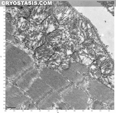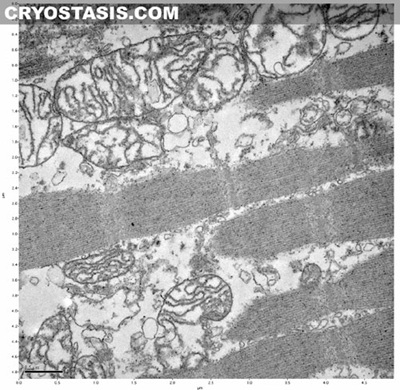 Prominent perimitochondrial dilation of rough endoplasmic reticulum was found in the muscle samples from the animal limb preserved at +4 degrees Celsius over 24 hours, suggesting severe hypoxic damage of the muscle cells.