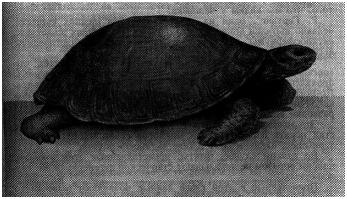 В течение последних 3 лет черепаха эта жила в саду, в Монтобане, вместе с двумя самками, снесшими оплодотворенные яйца. Итак, самец, которому, вероятно, более 87 лет, был способен на половую функцию. Приведу еще изображение (рис. 4) и описание гигантской черепахи с острова Маврикия, заимствованные у Рей Ланкестера. «По всей вероятности, — говорит он, — черепаха эта старше всех ныне живущих существ». Она была привезена в 1764 г. с Сейшельских островов на остров Маврикия и с тех пор живет там в губернаторском саду. Хотя возраст ее в точности не известен, но ввиду того что она провела в неволе уже 140 лет, ей не должно быть менее 150. А между тем по виду она вовсе не производит впечатления такой глубокой старости.