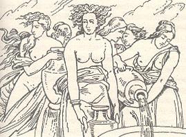 Но Данаиды не избежали кары за своё злодеяние, в царстве Аида они наполняют водой огромный сосуд, не имеющий дна. Вечно носят они воду, черпая её в подземной реке, и когда сосуд кажется уже полон, вода вытекает из него, и снова он пуст. Данаиды обречены, выполнять эту работу до скончания дней.