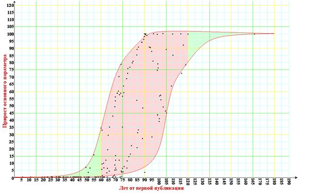 Построив график со всеми полученными точками, мы видим, что любая фундаментальная научная теория проходит в своём развитии несколько этапов.
