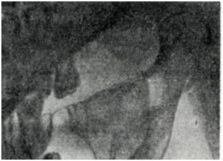 Рентгенологическая картина адамантиномы многообразна. Солидная форма опухоли представлена в виде полости с четко очерченными полициклическими контурами. Поликистозная форма адамантиномы характеризуется множеством преимущественно округлых или овальных полостей различных размеров, отделенных друг от друга тонкими перегородками. Проекционное наложение такого рода кист создает на рентгенограмме типичную картину ячеистой структуры (рис.2). Между этими двумя разновидностями адамантином имеется ряд переходных форм. При экспансивном росте адамантиномы наблюдается вздутие пораженной кости, а также истончение и прерванность кортикального слоя челюсти, рассасывание корней зубов или их выпадение. Внутри опухоли могут содержаться зубы.