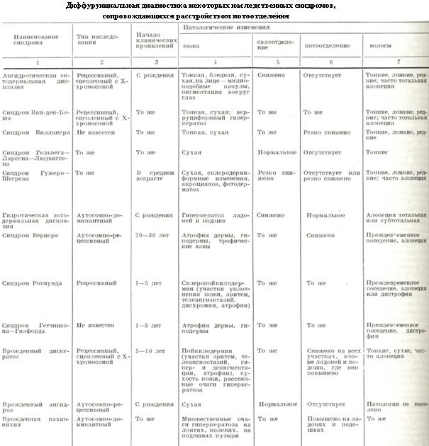 Дифференциальный диагноз ангидротических синдромов и близких к ним состояний — смотри таблицу.