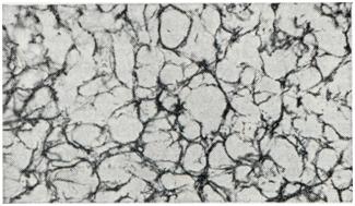 Митозы обычно не встречаются. Иногда обнаруживаются тучные, плазмоцитоидные клетки. Могут наблюдаться очажки экстрамедуллярного кроветворения. В стенках сосудов с помощью импрегнационных методик выявляется характерное для ангиоретикулемы обилие ретикулиновых волокон, местами охватывающих и группы клеток межсосудистой ткани (рис. 2). Край опухоли образован петлями капилляров, переходящих в прилежащую мозговую ткань, и поэтому неровен. В опухоли или ее участках может преобладать какой-либо один из компонентов — сосудистый или клеточный.