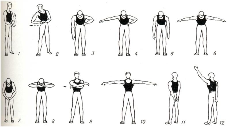 В подостром периоде используют активные, преимущественно облегченные, элементарные упражнения по основным осям движений в суставах в сочетании с общеукрепляющими и дыхательными упражнениями с постепенно возрастающей нагрузкой в положении лежа, а затем сидя и стоя. Наряду с активными упражнениями используют осторожные пассивные движения при возможно более полном расслаблении упражняемой конечности, считаясь с болевыми ощущениями (рис. 10). В терапии хронических артритов лечебная физкультура занимает важное место в клинической, в поликлинической и санаторно-курортной практике. При поражении суставов верхних конечностей упражнения выполняют преимущественно в положении сидя и стоя (рис. 11). При патологии суставов нижних конечностей в положении лежа, сидя и стоя тренируют опорную функцию ног (рис. 12). При заболеваниях позвоночника рекомендуют также и разгрузочные для позвоночника положения, например на четвереньках (рис. 13). Применяют упражнения активные: свободные, с усилием, с широким использованием различных снарядов, предметов и специальных приспособлений (особенно для восстановления функции кисти, в целях бытовой и трудовой реабилитации и так далее). Дополнительно используют упражнения на механотерапевтических аппаратах. Больным рекомендуется выполнение самостоятельных занятий с повторением заданий в течение дня до 4—6 раз продолжительностью по 5 — 7 мин. в целях тренировки пораженных суставов. Кроме того, полезна утренняя гигиеническая гимнастика, прогулки. Целесообразно лечебную физкультуру проводить в сочетании с массажем, бальнео- и грязелечением.