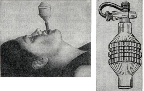 Адаптация больного к респиратору (синхронизация с собственными дыхательными движениями) достигается несколькими методами. Суггестивный метод (команда «вдох — выдох») применим у находящихся в сознании больных и эффективен при умеренной гипервентиляции. Выраженная гипервентиляция (30—40% сверх должной величины) также позволяет синхронизировать дыхательные движения больного с респиратором. Наркотические и седативные средства, подавляющие собственные дыхательные попытки, применяют при неэффективности предшествующих методов. Миорелаксанты короткого действия используют в начале искусственного дыхания; миорелаксанты длительного действия для адаптации к респиратору следует применять лишь при отсутствии эффекта от остальных методов или при необходимости подавления судорожного синдрома. Десинхронизация дыхательных движений больного и респиратора возникает чаще всего при нарушении герметичности дыхательного контура и при гиповентиляции. Экспираторные методыЭкспираторные методы применяются только в срочных ситуациях — при внезапном прекращении дыхания и невозможности применить аппаратные методы. Чтобы обеспечить проходимость верхних дыхательных путей, голову лежащего на спине пострадавшего максимально разгибают в позвоночно-затылочном сочленении, выдвигая нижнюю челюсть вперед и вверх так, чтобы подбородок занимал самое возвышенное положение (рис. 4). Обеспечение проходимости дыхательных путей облегчается введением S-образного воздуховода или интубационной трубки. Оживляющий вдувает в рот или нос пострадавшего выдыхаемый им самим воздух после предшествующего глубокого вдоха, При вдувании в рот ноздри пострадавшего должны быть зажаты пальцами или щекой оживляющего, хотя в ряде случаев эта мера является излишней, поскольку мягкое небо выполняет роль клапана и не пропускает вдуваемый воздух в полость носа. При вдувании в нос должен быть закрыт рот пострадавшего, который следует открывать при выдохе, если мягкое небо пе пропускает воздух через нос. Главный критерий эффективности экспираторных методов искусственного дыхания — расширение грудной клетки при вдувании воздуха и спадение ее при пассивном выдохе. Частота вдуваний зависит от скорости пассивного выдыхания воздуха и для взрослого человека колеблется в пределах 10—20 в 1 минуту, а объем вдуваемого воздуха каждый раз — 0,5 —1,0 л. Поскольку при давлении свыше 20 см водного столба воздух может попадать в желудок, вызывая регургитацию желудочного содержимого и другие осложнения, необходимо, чтобы давление вдоха не превышало эту величину. При хорошей проходимости дыхательных путей давление вдоха 12—15 см водного столба достаточно, чтобы вдуть в легкие пострадавшего необходимый объем воздуха. В тех случаях, когда искусственное дыхание сочетается с закрытым массажем сердца, делают одно вдувание через 4—5 сжатий грудной клетки. Если один оживляющий проводит искусственное дыхание и закрытый массаж сердца, то рекомендуется два вдувания подряд, а затем 10—12 сжатий грудной клетки. Несмотря на то, что в выдыхаемом воздухе, который вдувают пострадавшему, содержится только 15 — 17% кислорода и 2—4% углекислоты, экспираторные методы высокоэффективны в поддержании необходимого газообмена на протяжении десятков минут и даже часов. Однако эти методы не только ут