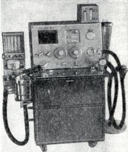 В СССР выпускается более 15 различных моделей аппаратов для искусственного дыхания. Впервые в мире, в частности, осуществляется выпуск аппаратов, автоматически поддерживающих минутную вентиляцию такой величины, которая обеспечивает заданное содержание углекислоты в альвеолярном газе (рис. 15).