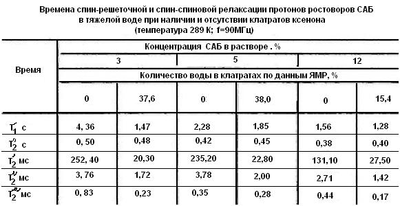 Получена зависимость количества образующихся клатратов от концентрации белка в растворе, выявлен максимум в диапазоне концентраций белка 0,5—4 % и обнаружена зависимость его величины и положения от природы белка. Высказано предположение, что это явление обусловлено соотношением полярных и неполярных групп на поверхности молекул белков. Показано, что наличие «барьеров» и структурных препятствий, возникающих при образовании клатратов ксенона, существенно снижает измеряемый коэффициент самодиффузии молекул воды в растворах белка. В действительности трансляционная подвижность молекул воды в жидкой фазе, повидимому, снижается в значительно меньшей степени. Из данных ЯМР-релаксации следует, что при образовании клатратов ксенона, как и при медленном замораживании растворов, происходит вытеснение молекул белка в объем жидкой воды. Анализ зависимостей скоростей релаксации Т1 и Т2 от количества белка в жидкой фазе растворов САБ с клатратами показал, что в образовании клатратов принимает участие в основном свободная вода, при этом снижается подвижность не только молекул воды, но и молекул белка. Литература1.Бык С.Ш., Макогон Ю.Ф., Фомина В.И. Газовые гидраты. — М: Химия. 1980. 296 с. 2.Волков В.Я., Даутов Р.А„ Непримеров И.Н. Стимулированное эхо н трансляционное движение ядер в гетерогенных системах. — В кн.: Радиоспектроскопия. Пермь, 1980, с. 189-193. 3.Голдовский А.М. О состоянии организмов на стадиях анабиоза. — Криобиология и криомедицина. 1980. вып. 7, с. 6 - 10. 4.Родин В.В., Архангельский А.И., Исаьгалин Ф.Ш., Волков В.Я. Исследование гидратов ксенона в водных растворах белков методом ЯМР-релаксации. — В кн.: Тез. докл. Всесоюз. симпоз. «Магнит. резонанс в биологии и медицине». М.; Черноголовка. 1981, с. 115—116. 5.Фаррар Т., Беккер Э. Импульсная и Фурье-спектроскопия ЯМР. — М.: Мир, 1973.— 164 с.